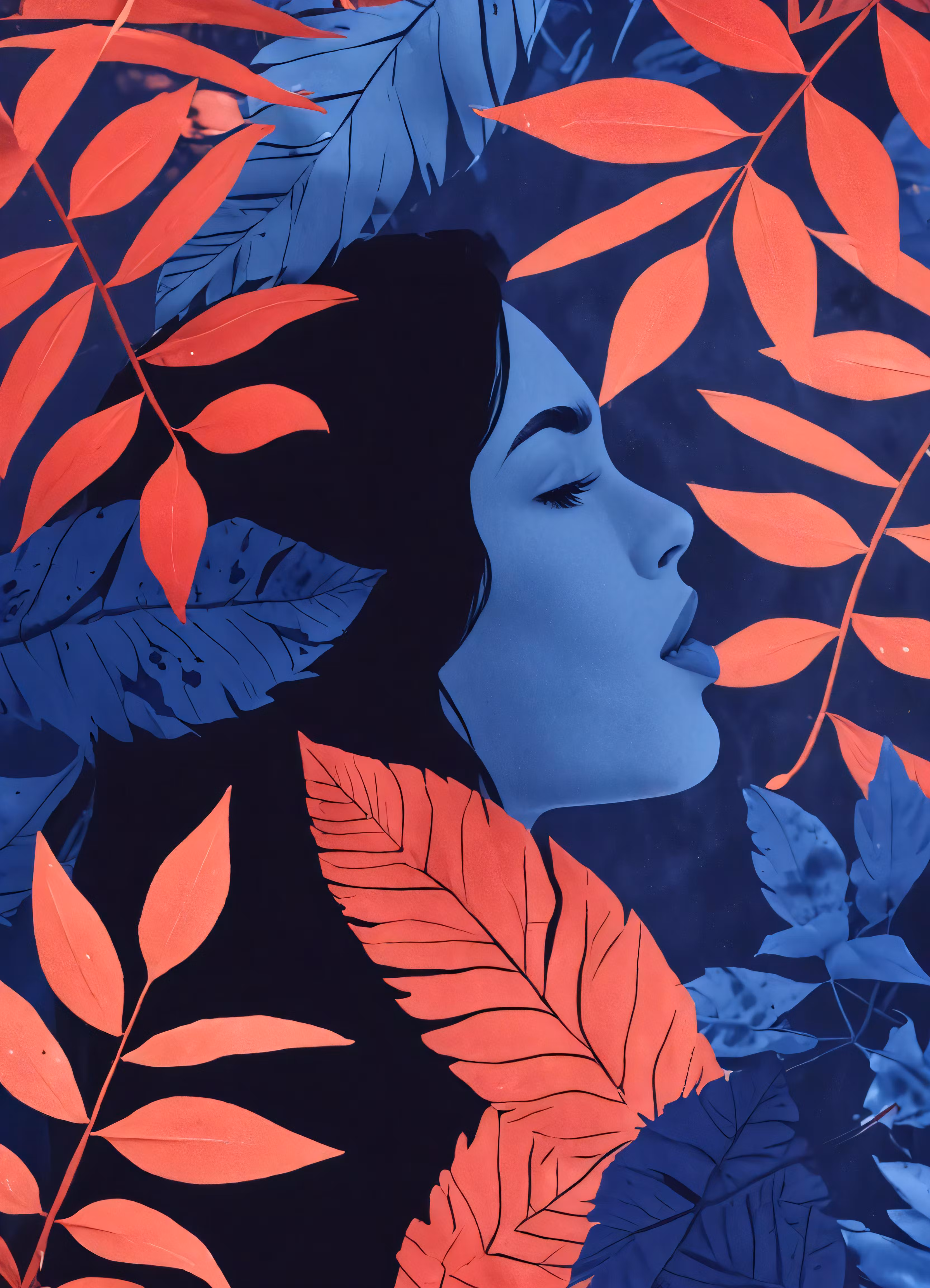 High resolution picture, free to use, a woman with her face obscured by leaves