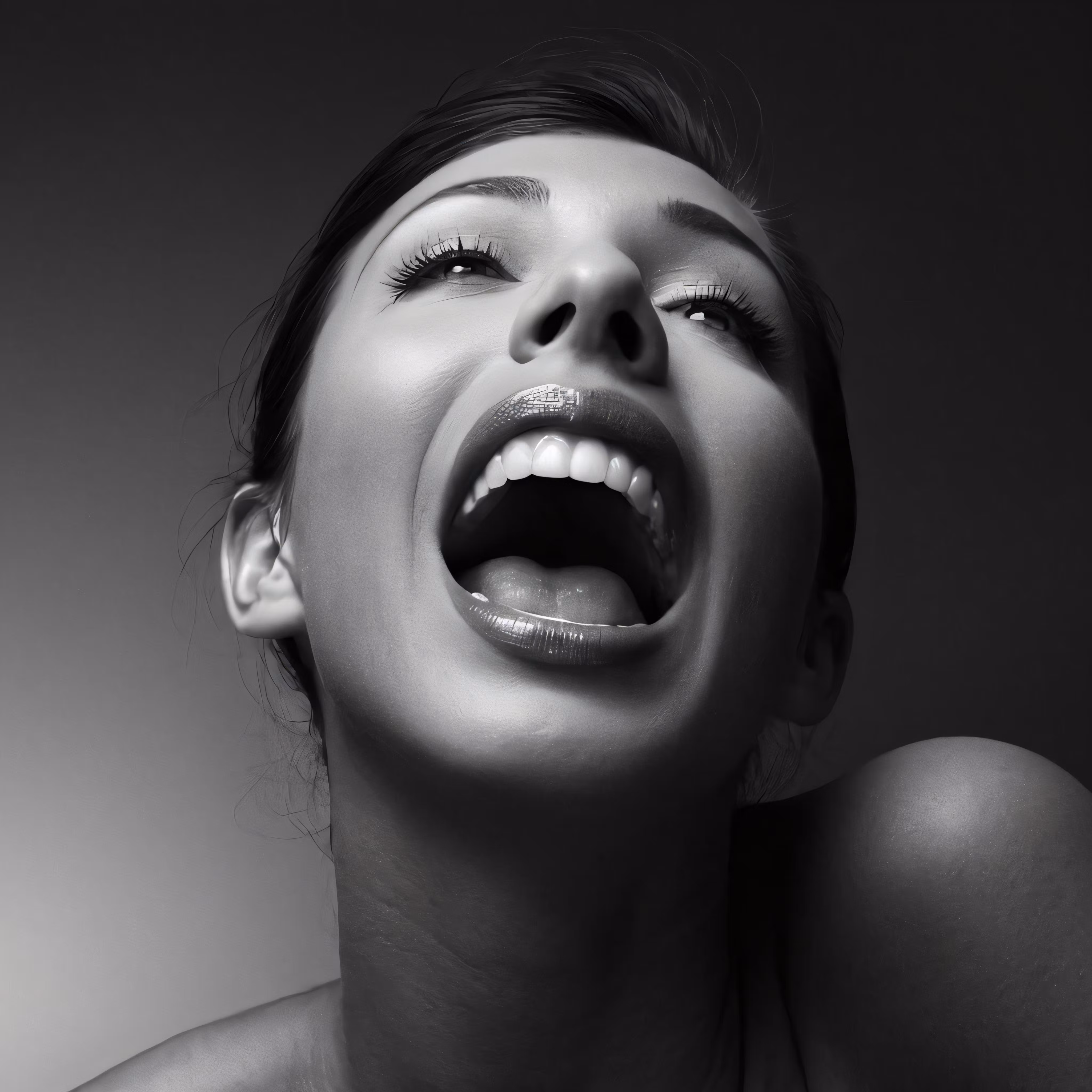 High resolution picture, free to use, a woman with her face open and an opening tongue