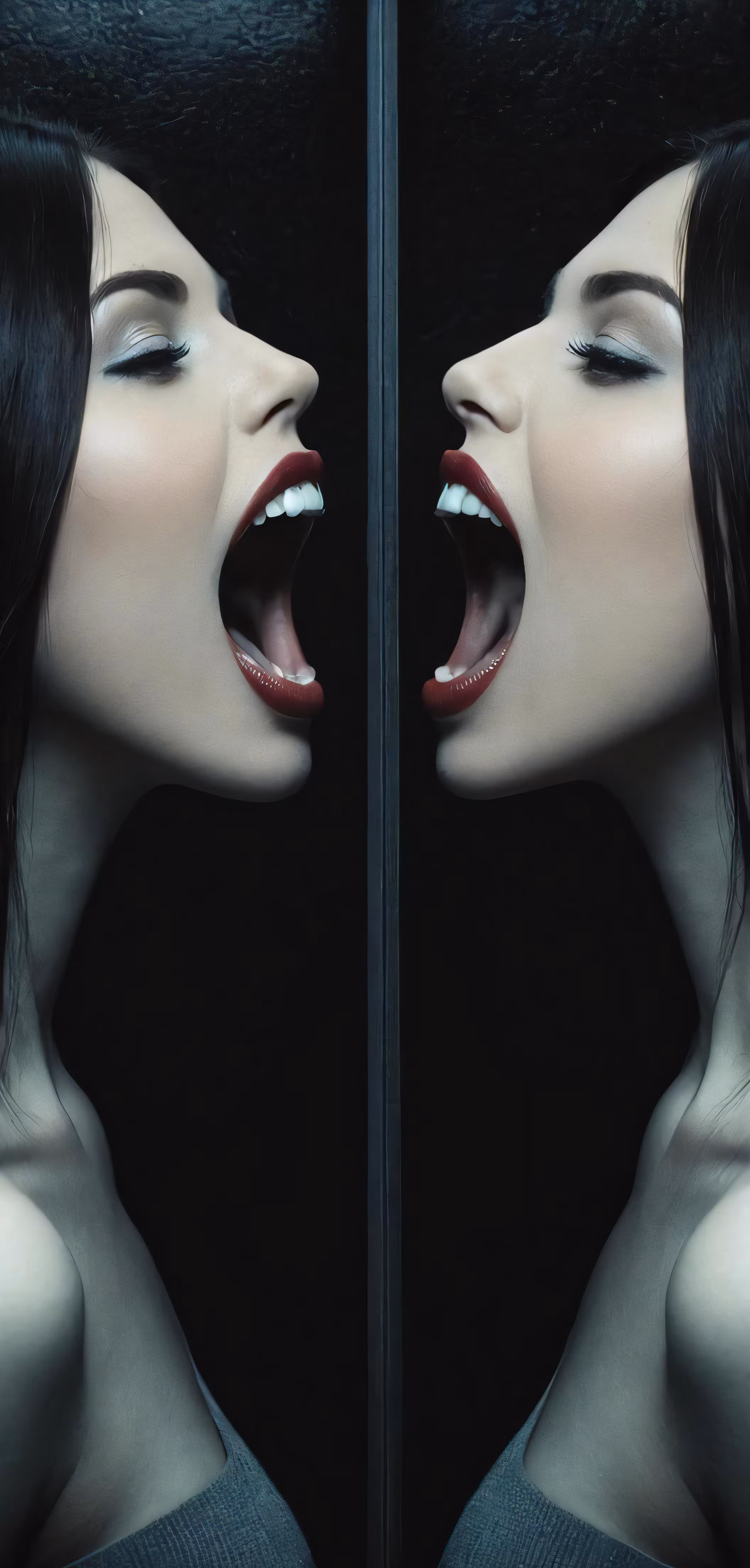 High resolution picture, free to use, a woman with her mouth open with one eye opened