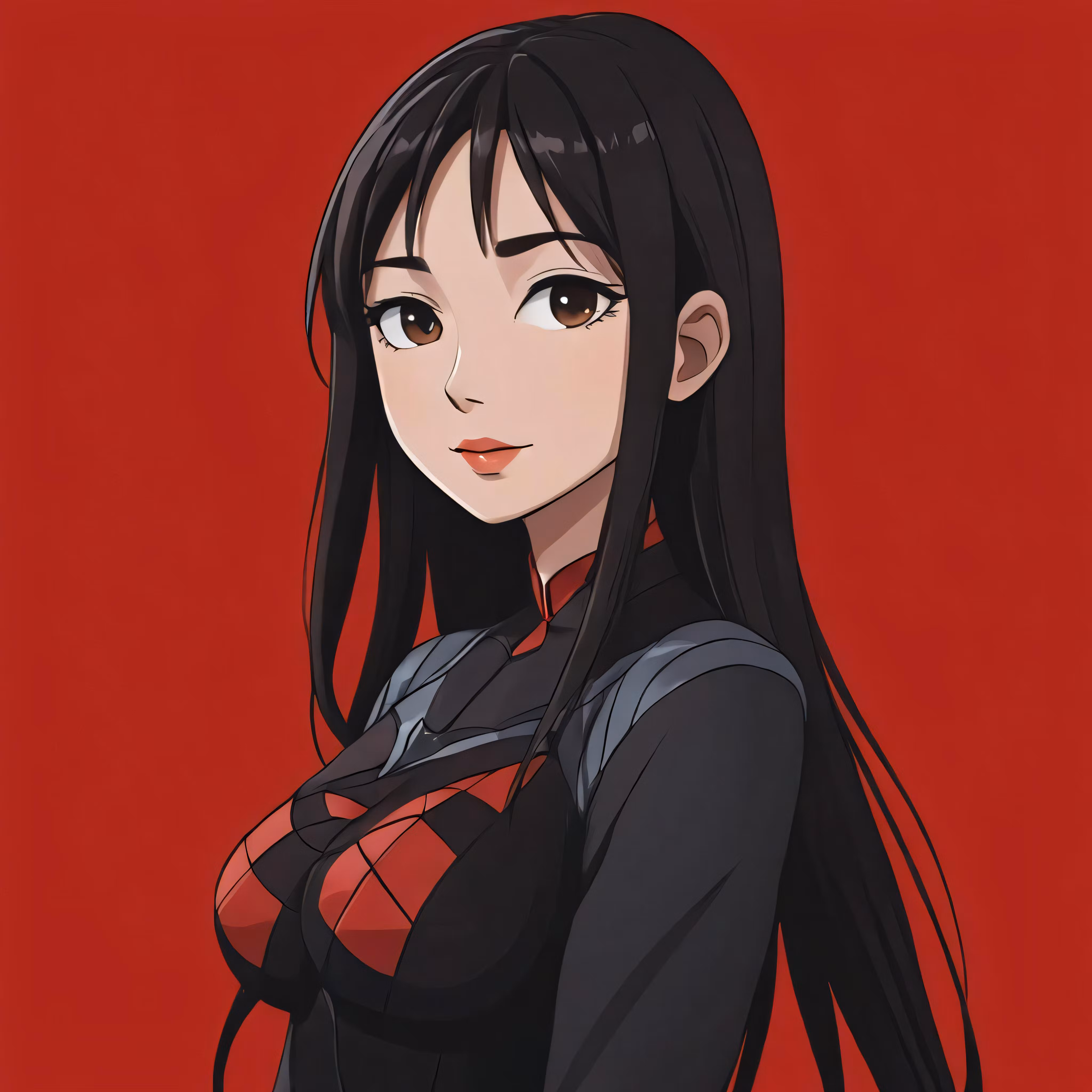 High resolution picture, free to use, a woman with long black hair wearing a red shirt