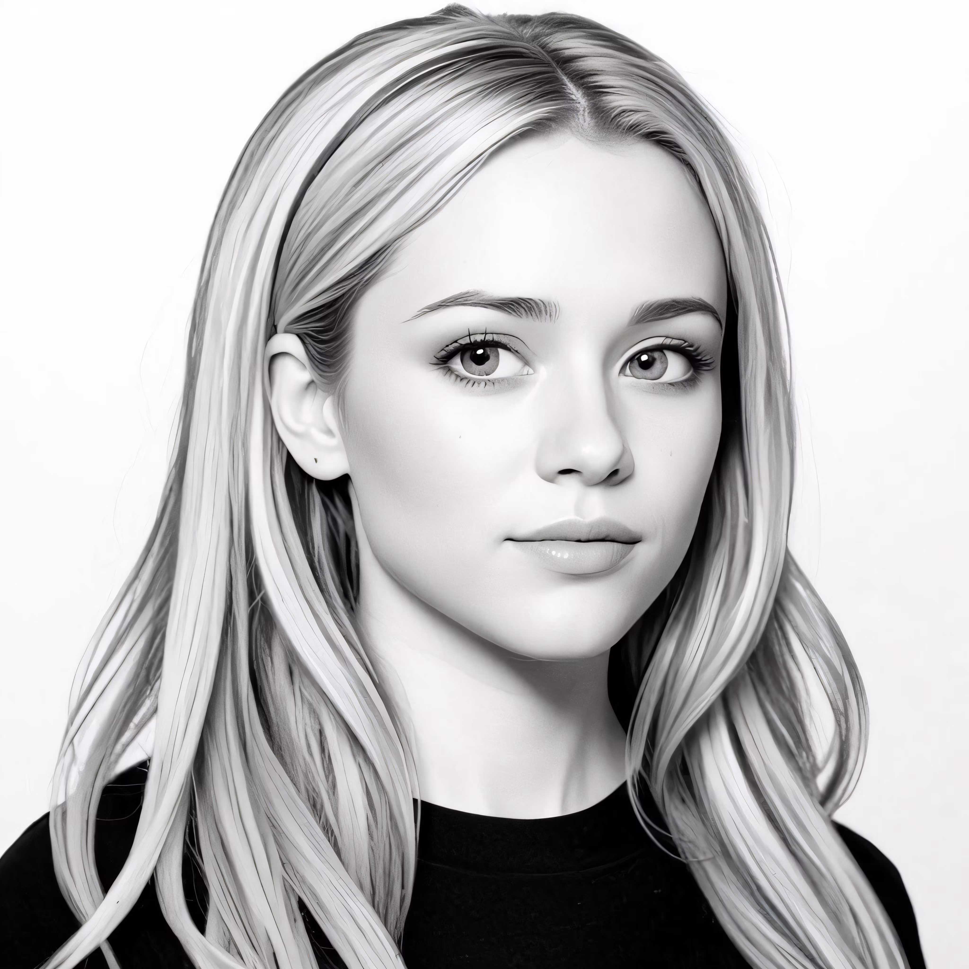 High resolution picture, free to use, a woman with long blonde hair, wearing black and white