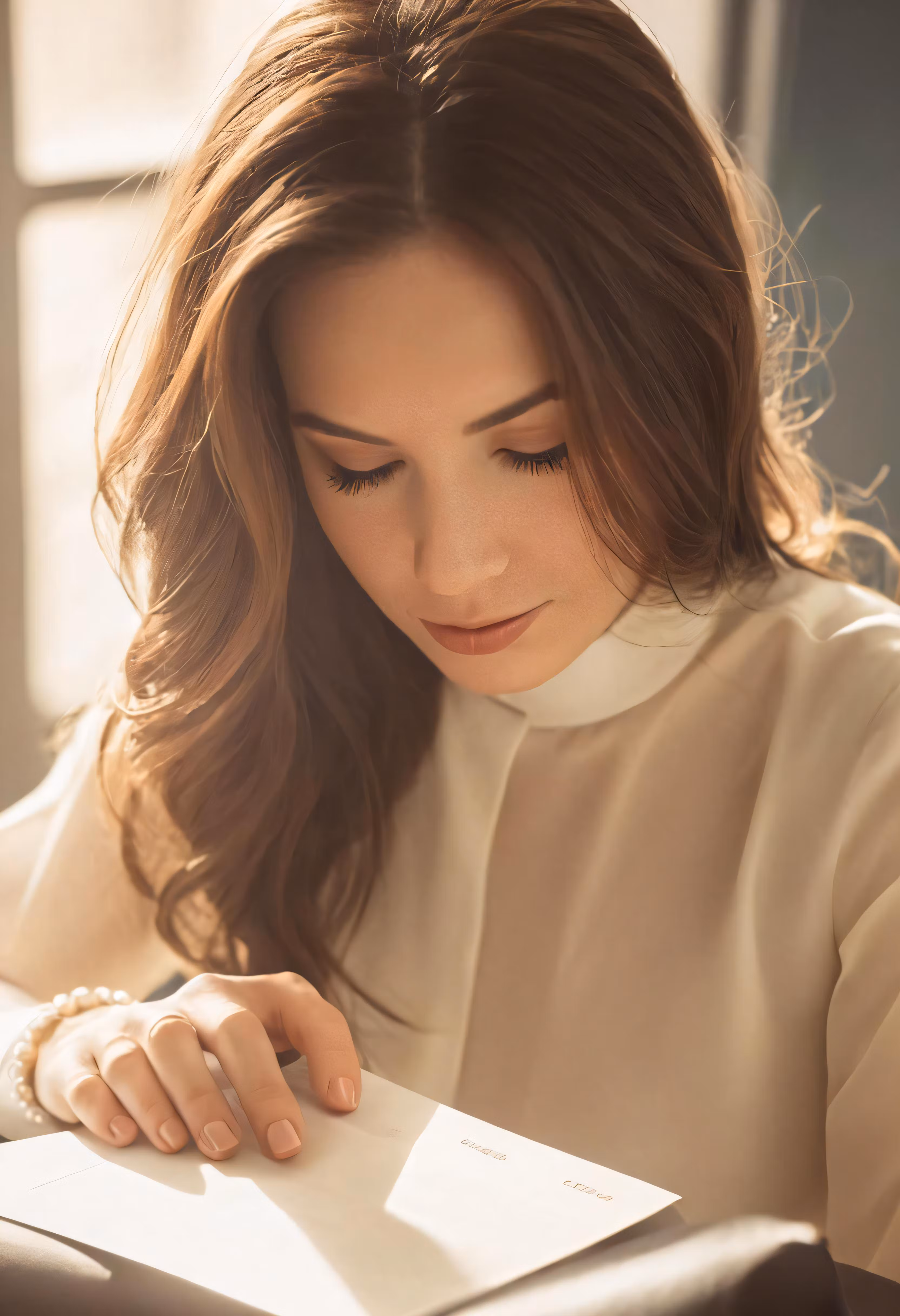 High resolution picture, free to use, a woman with long dark hair reading a book