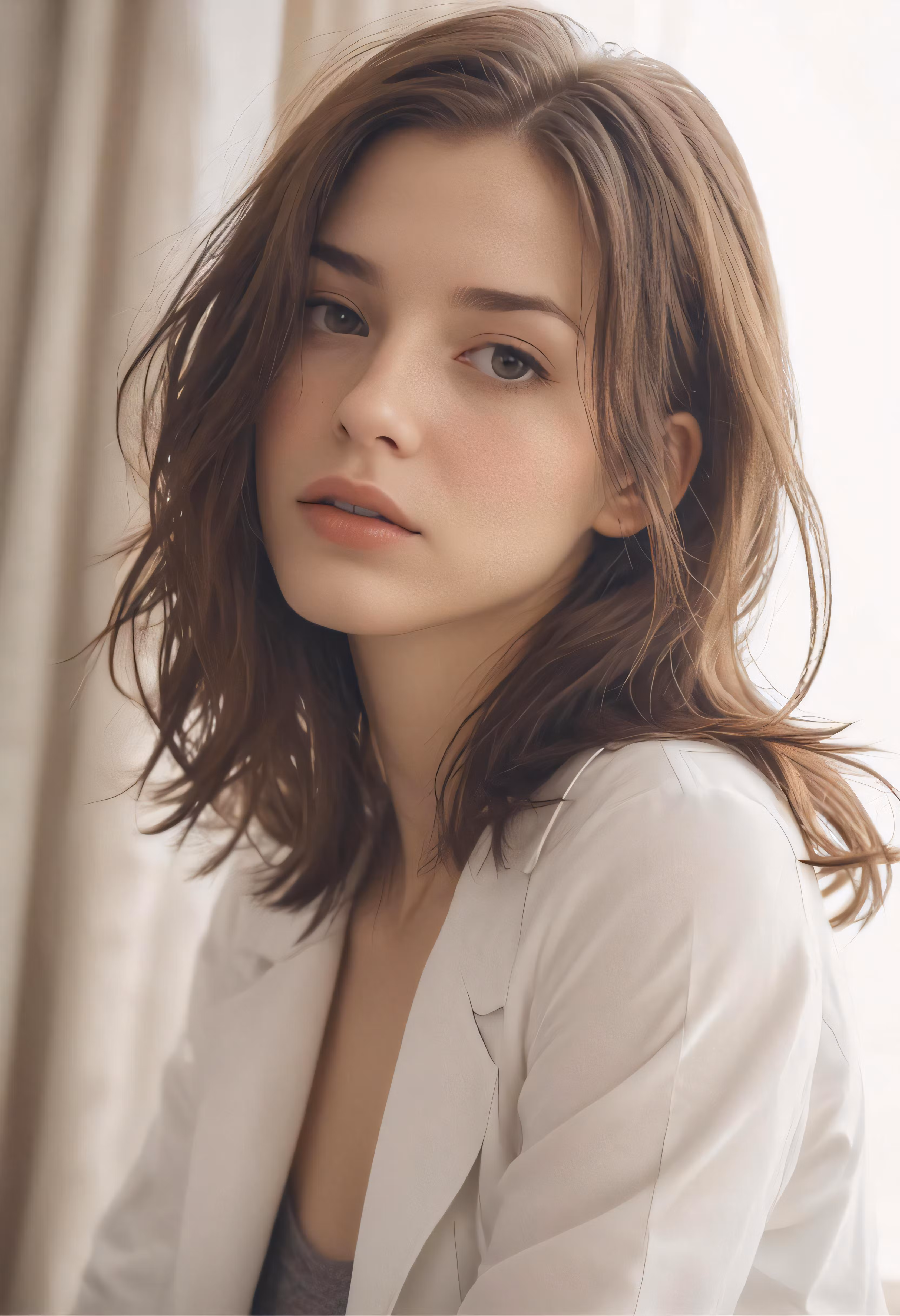 High resolution picture, free to use, a woman with long hair is sitting by a window