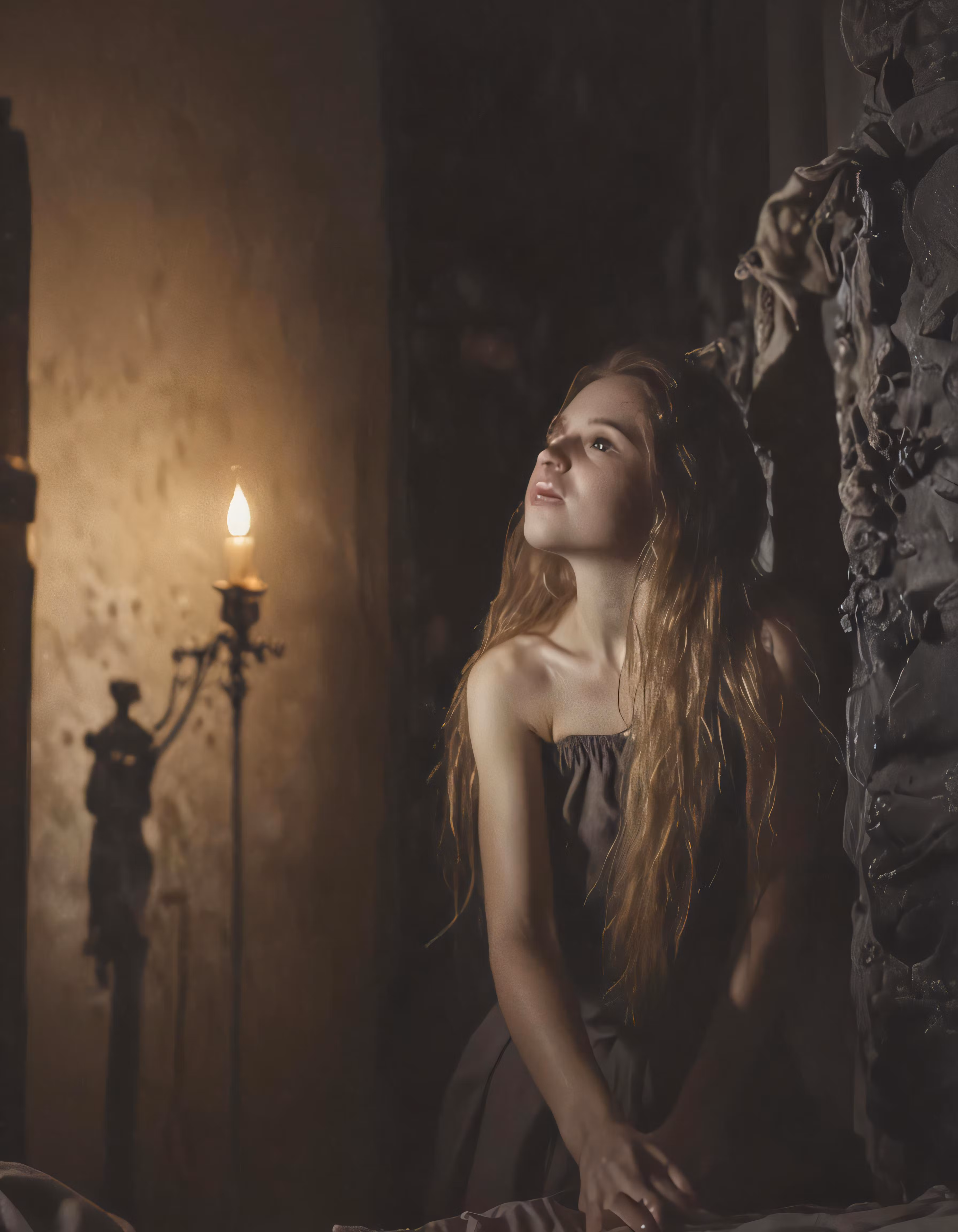High resolution picture, free to use, a woman with long hair sitting on a bed
