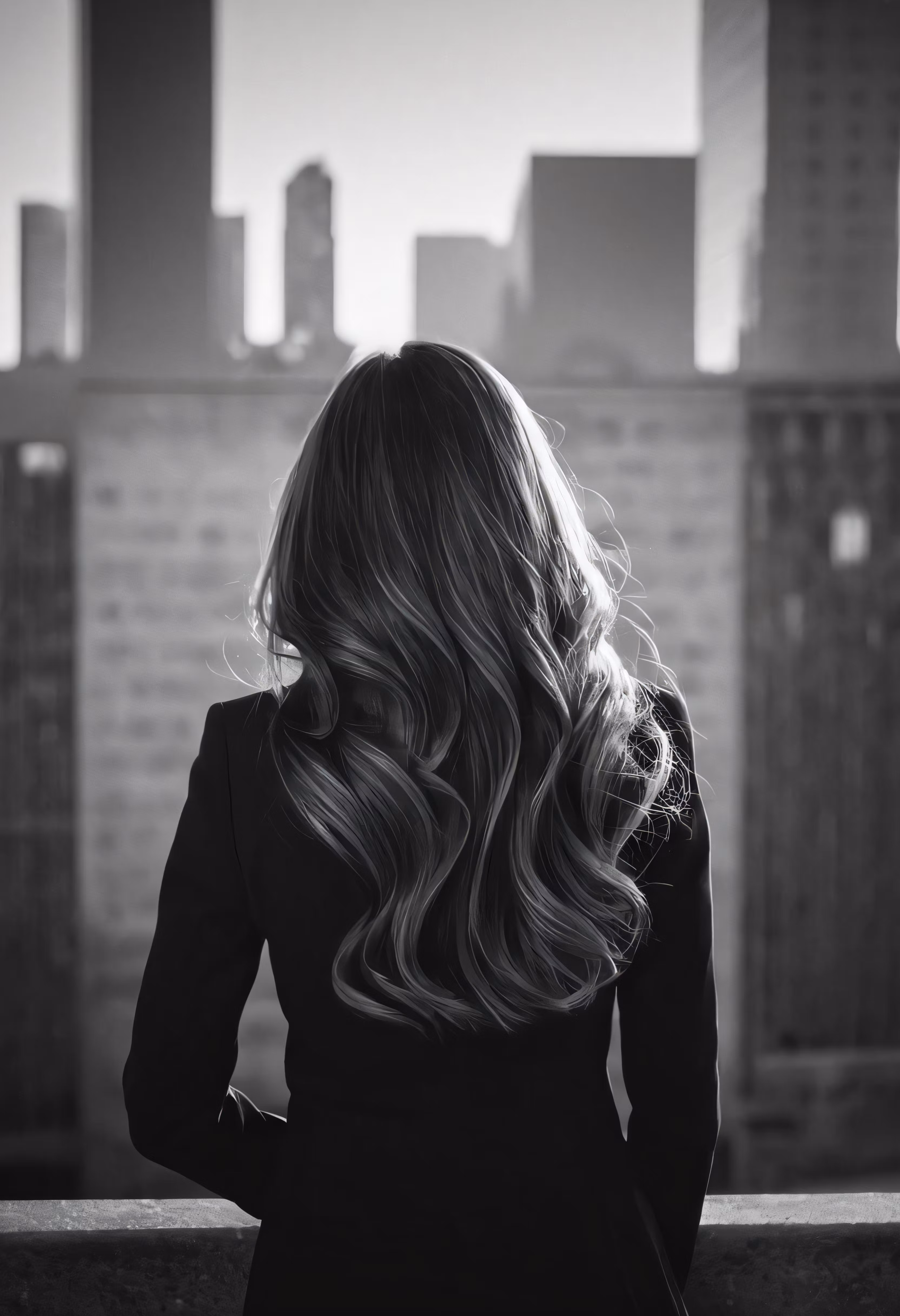 High resolution picture, free to use, a woman with long hair standing on the balcony