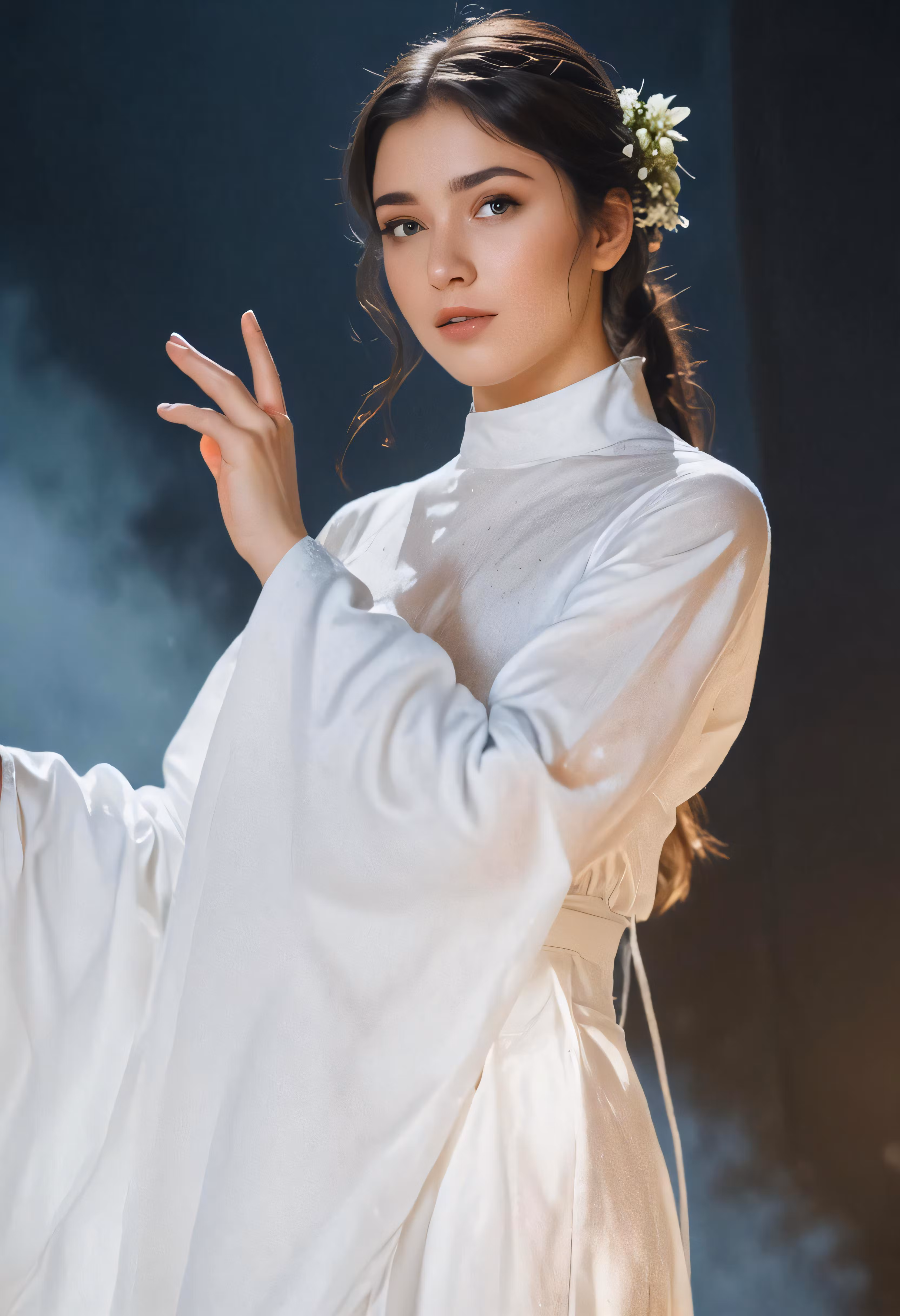 High resolution picture, free to use, a woman with long hair wearing a white dress