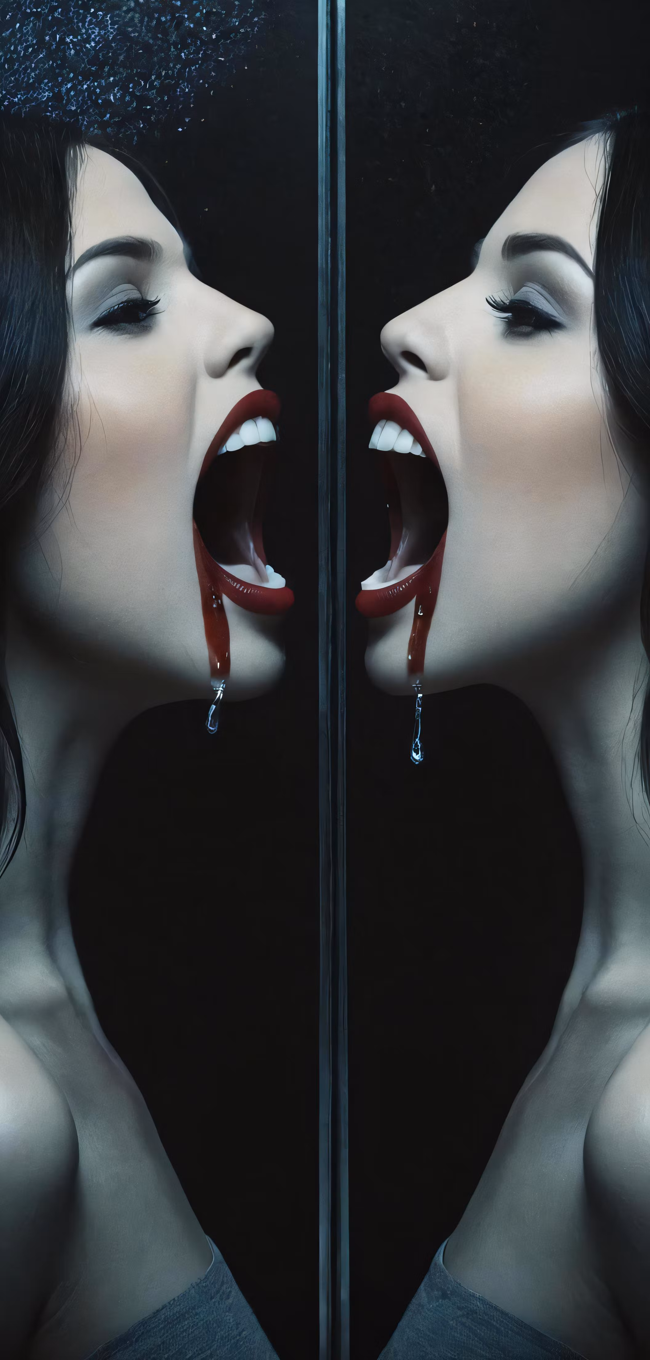 High resolution picture, free to use, a woman with open mouth and dripping red liquid on her face