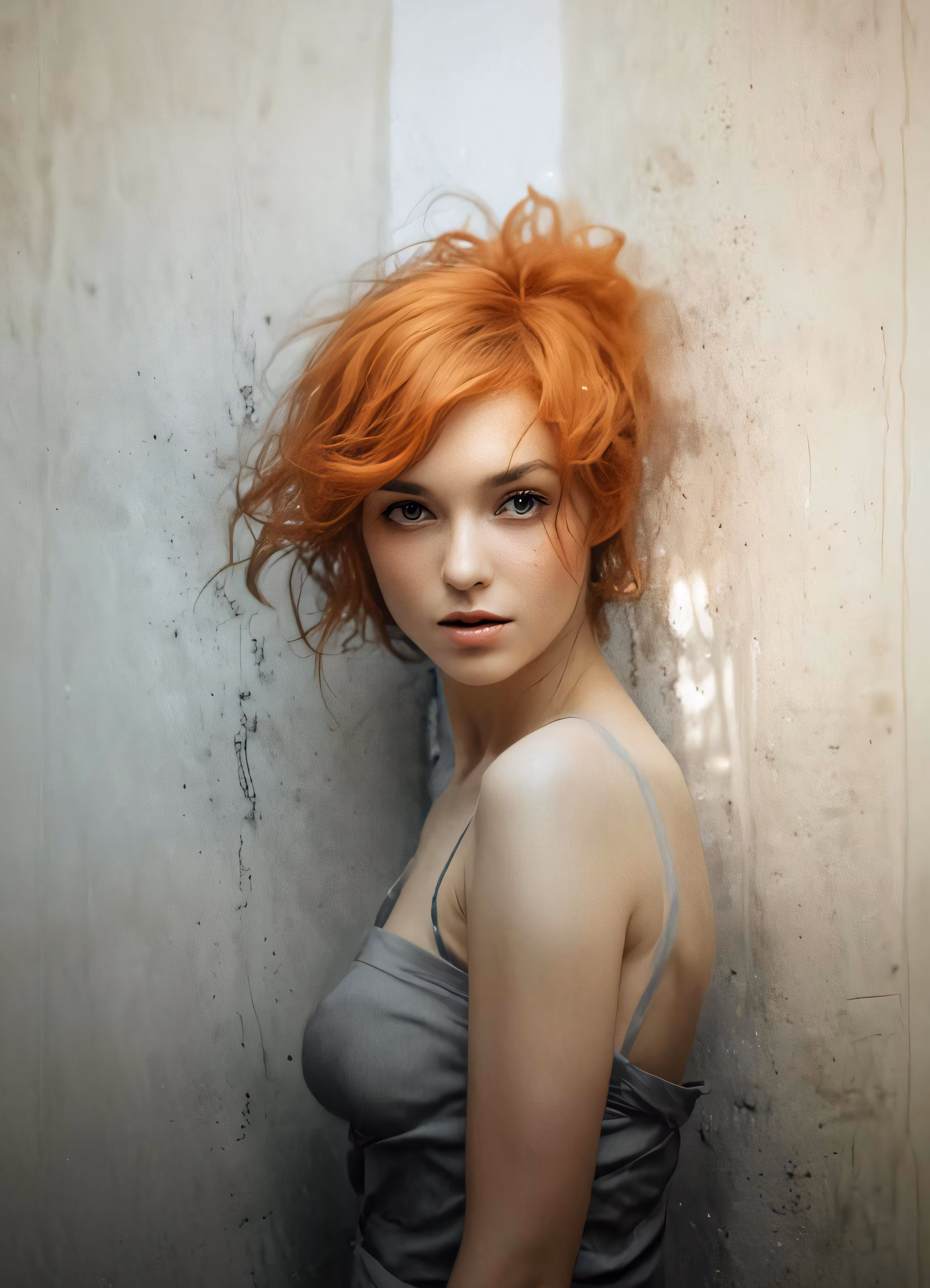 High resolution picture, free to use, a woman with red hair in an artistic pose