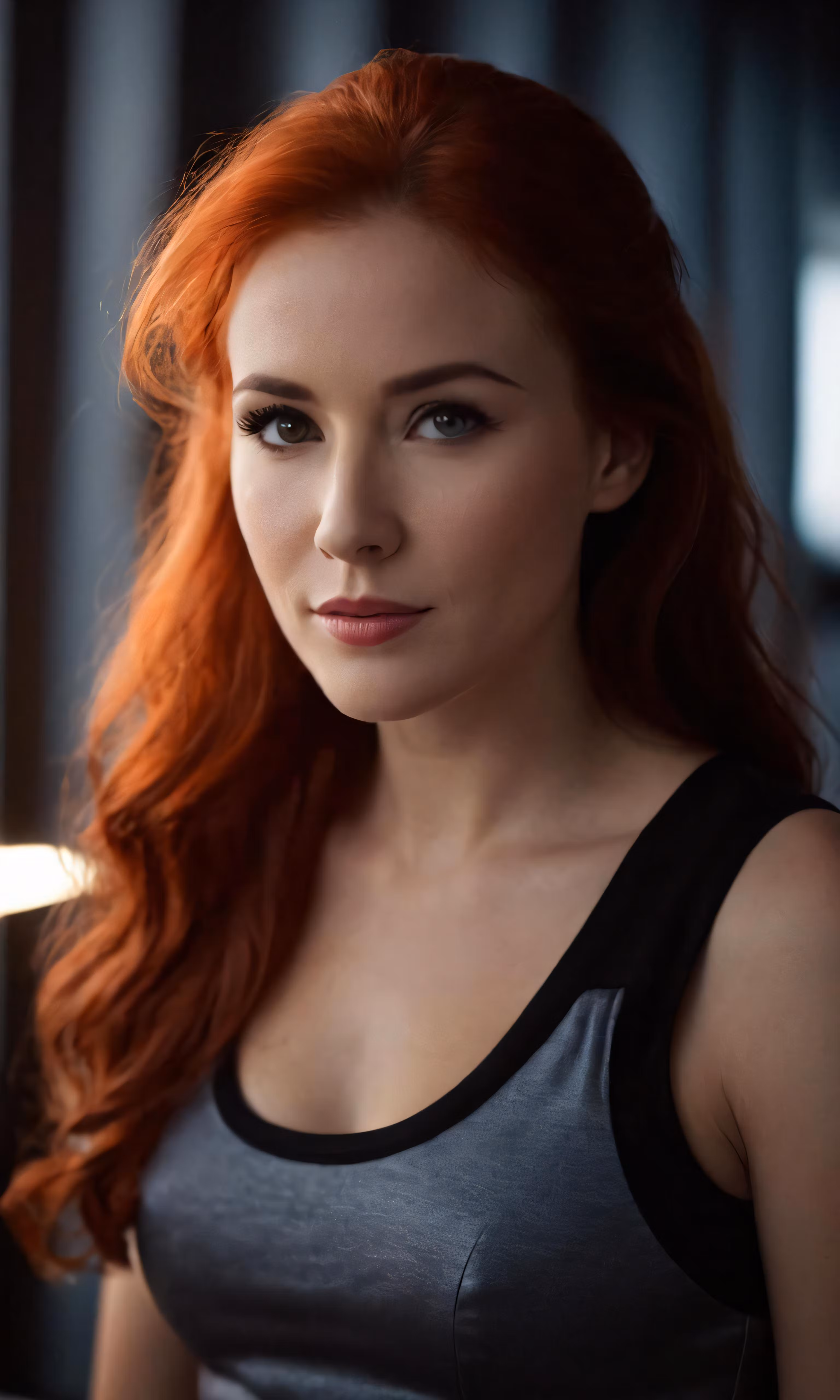 High resolution picture, free to use, a woman with red hair is in a dark room