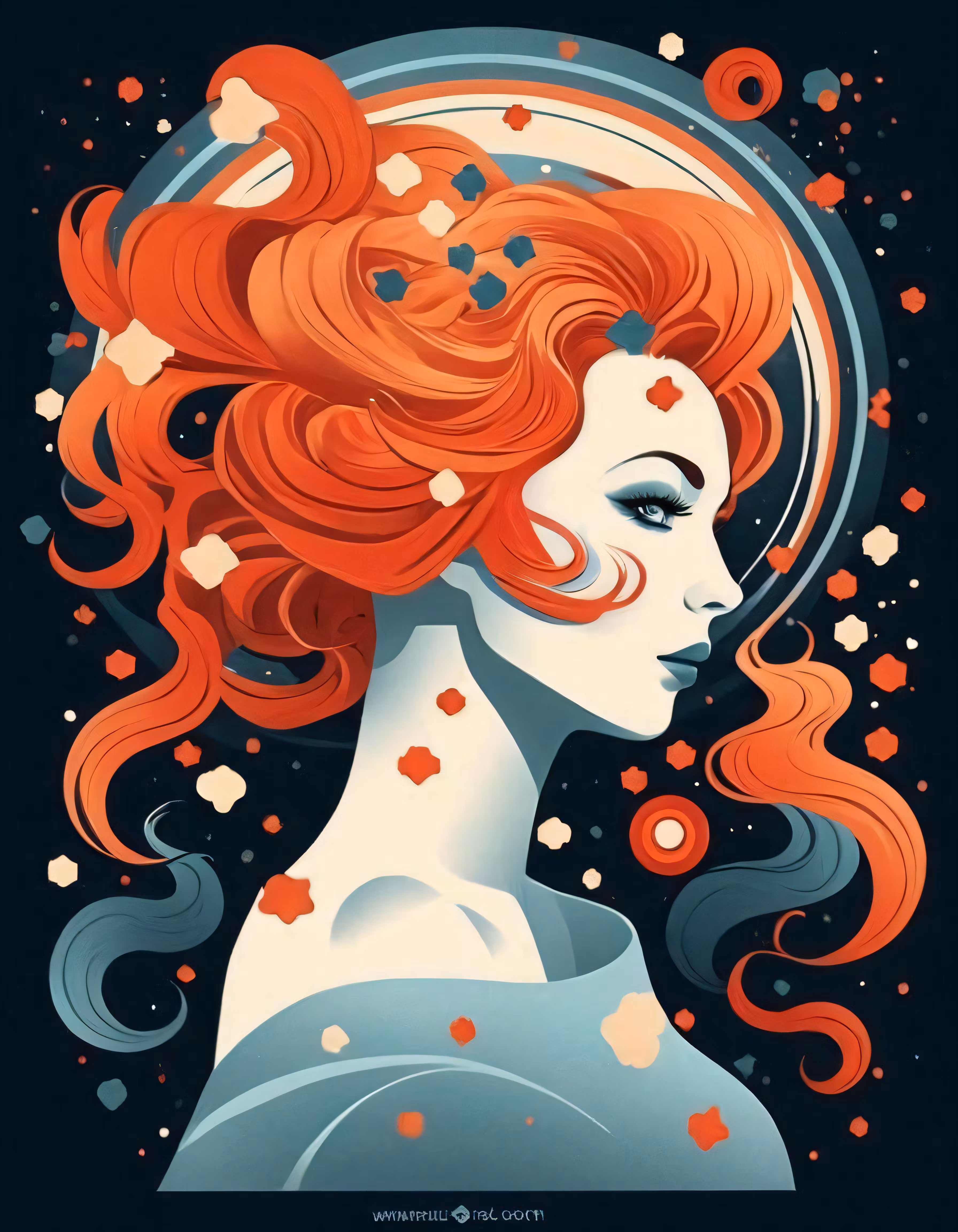 High resolution picture, free to use, a woman with red hair with red stars on it