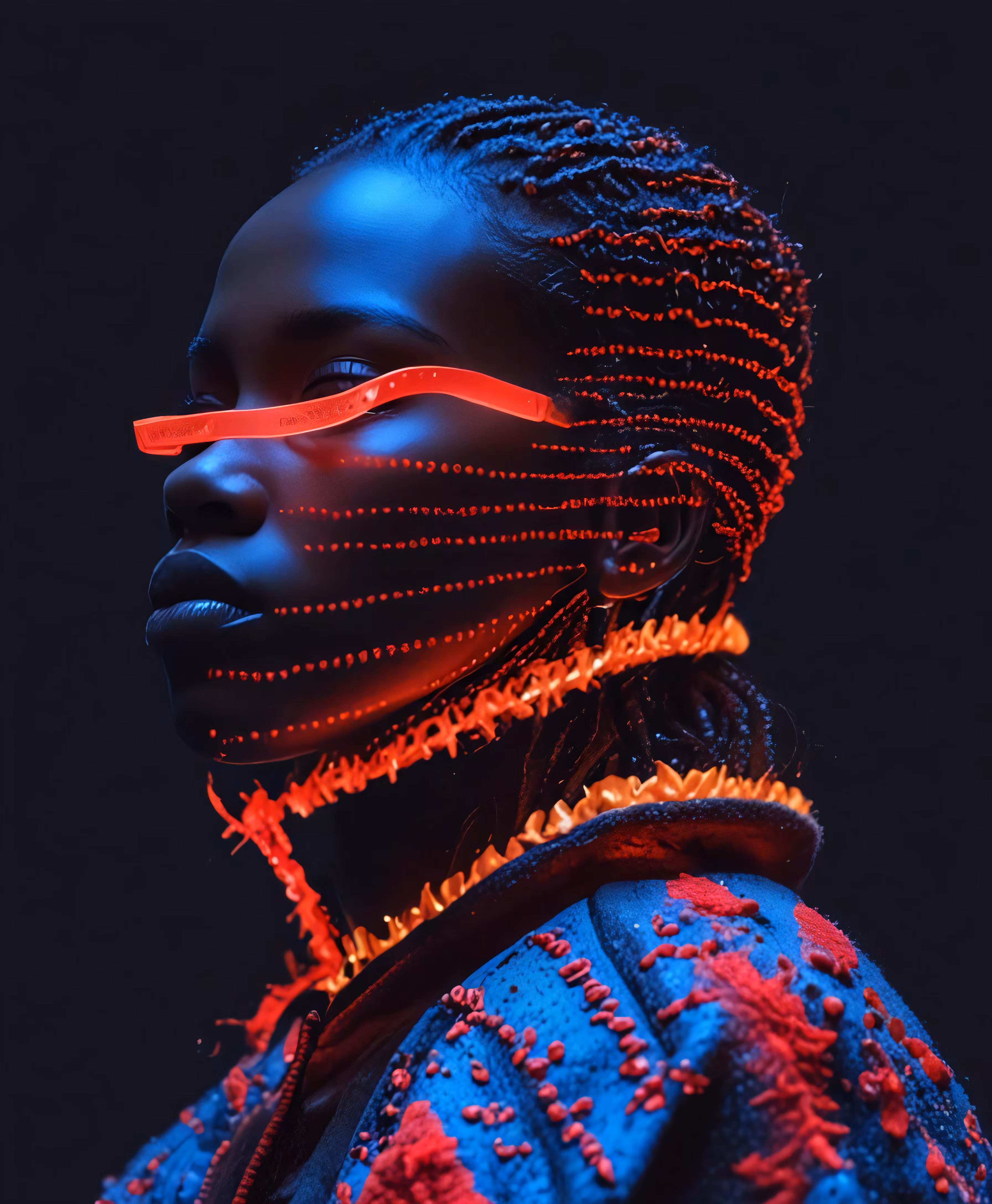 High resolution picture, free to use, a woman with red light on her face