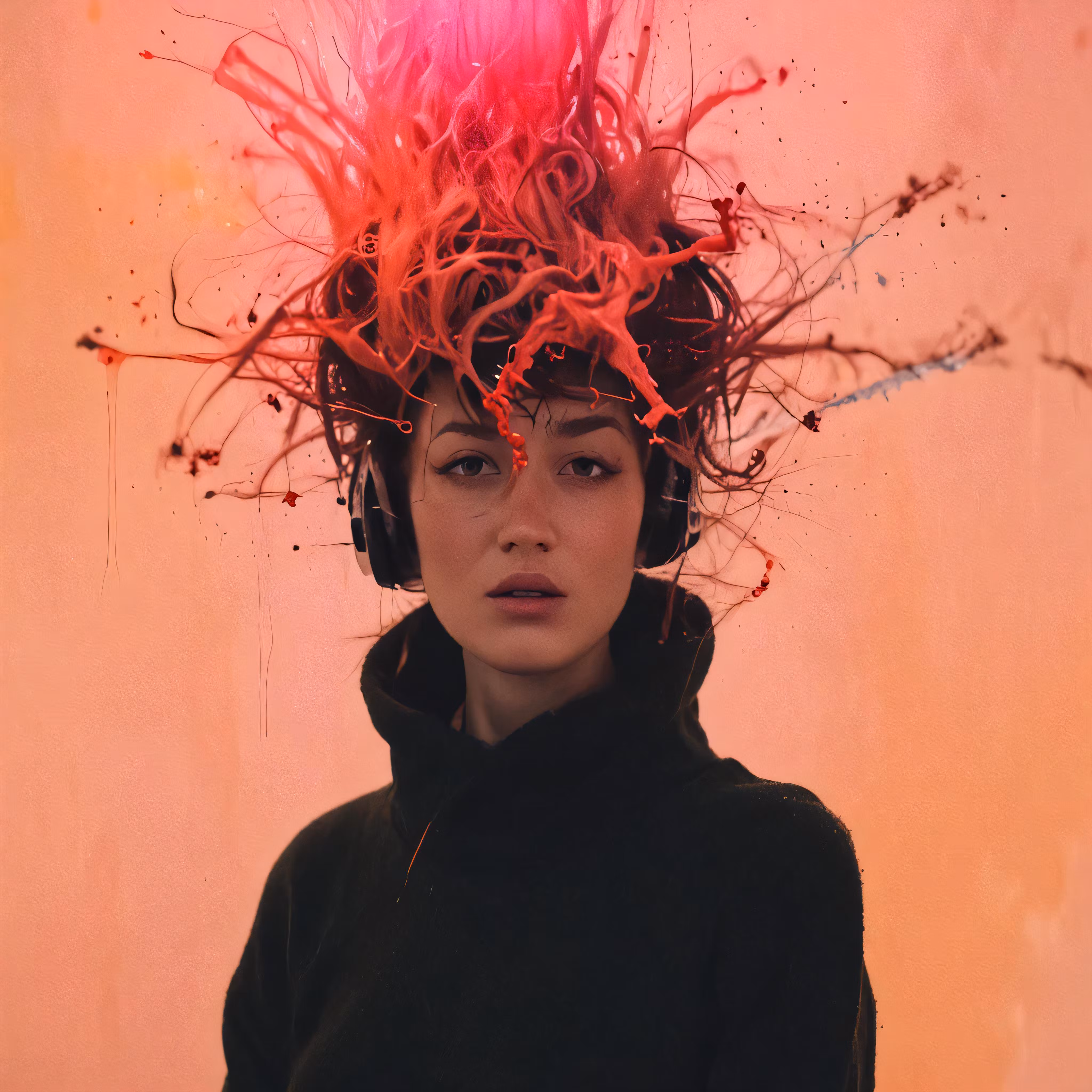 High resolution picture, free to use, a woman with red paint on her head looking over her shoulder