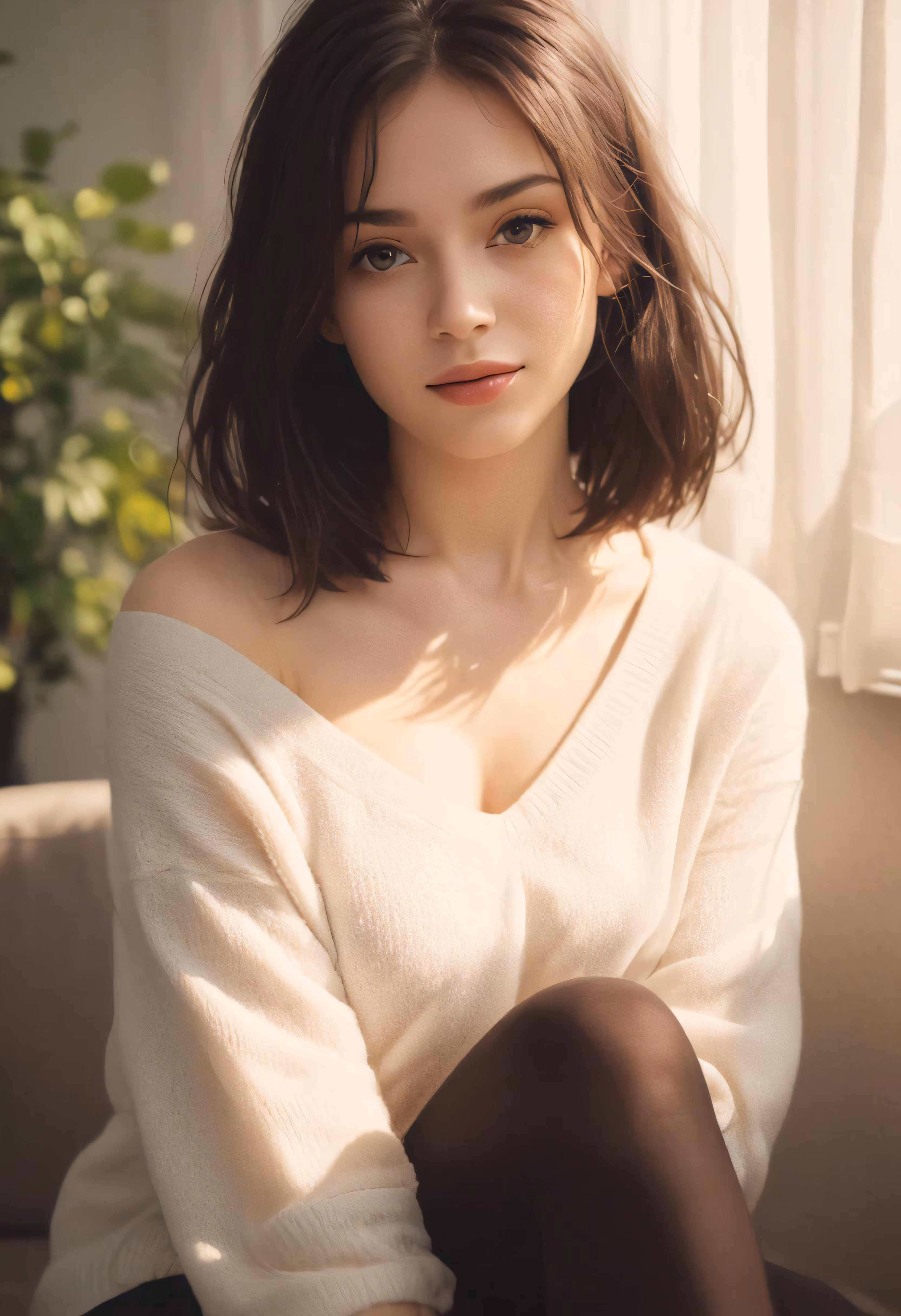 High resolution picture, free to use, a woman with short brown hair and wearing a sweater