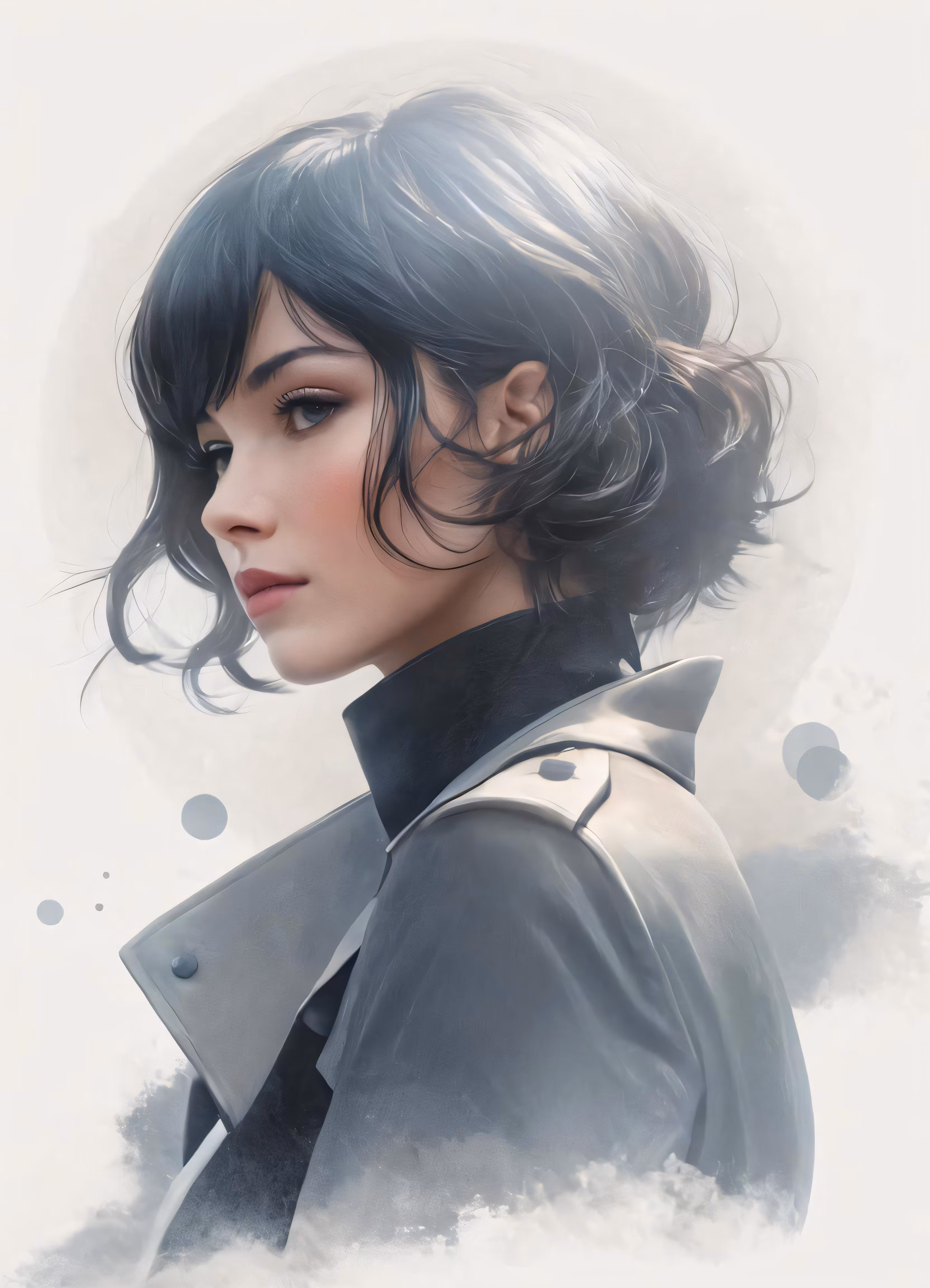 High resolution picture, free to use, a woman with short hair in a jacket