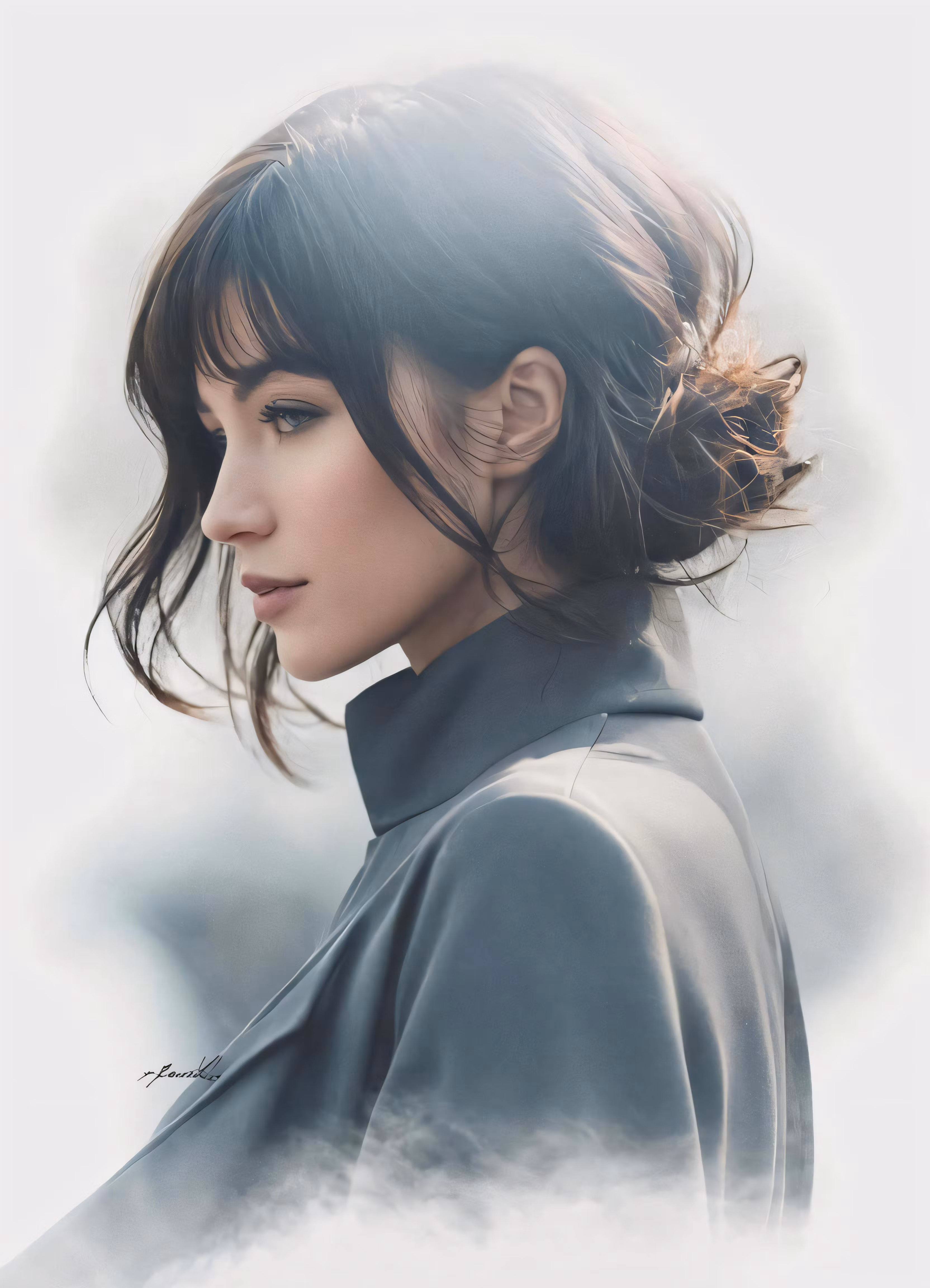 High resolution picture, free to use, a woman with short hair looks back over her shoulder