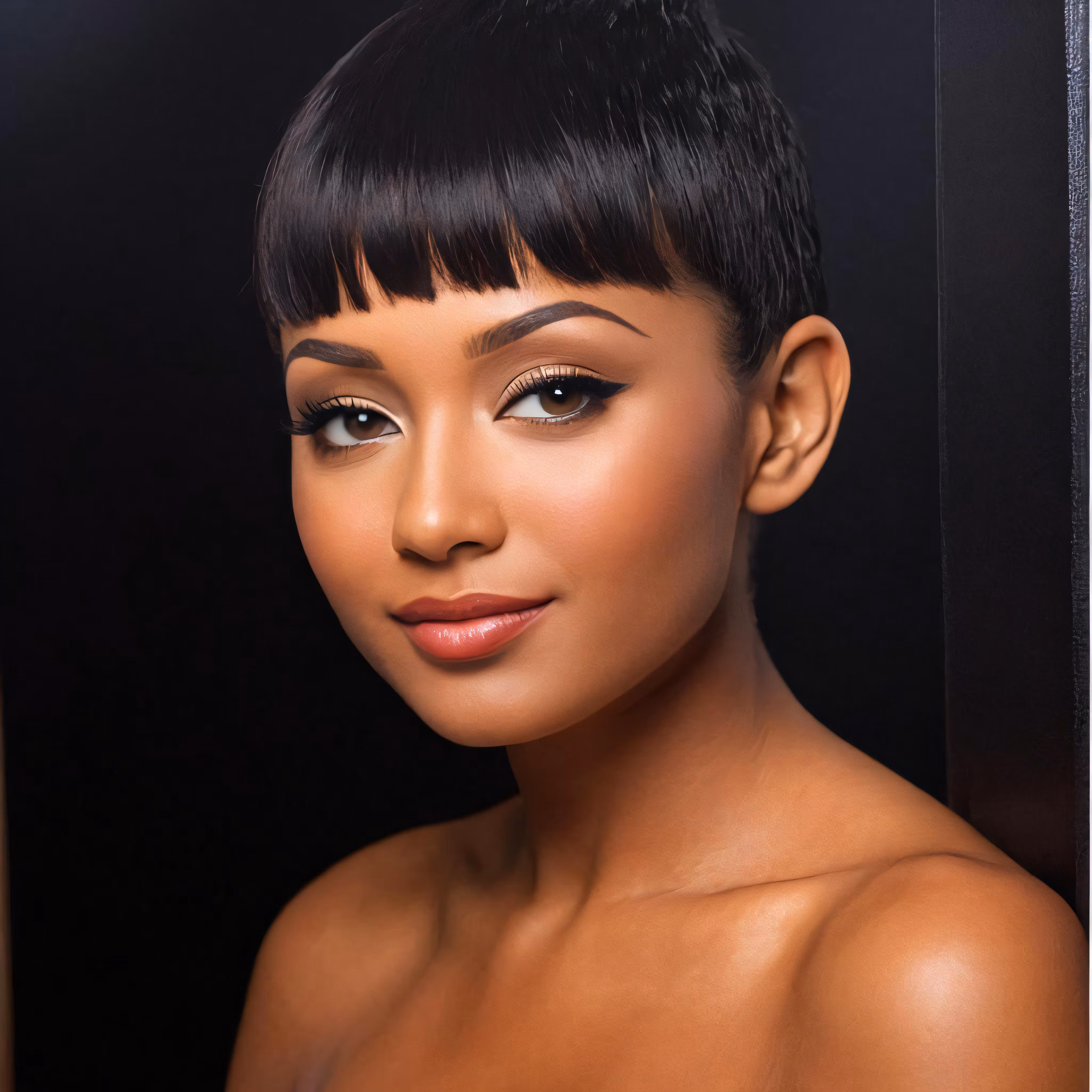 High resolution picture, free to use, a woman with short hair wearing a high bun