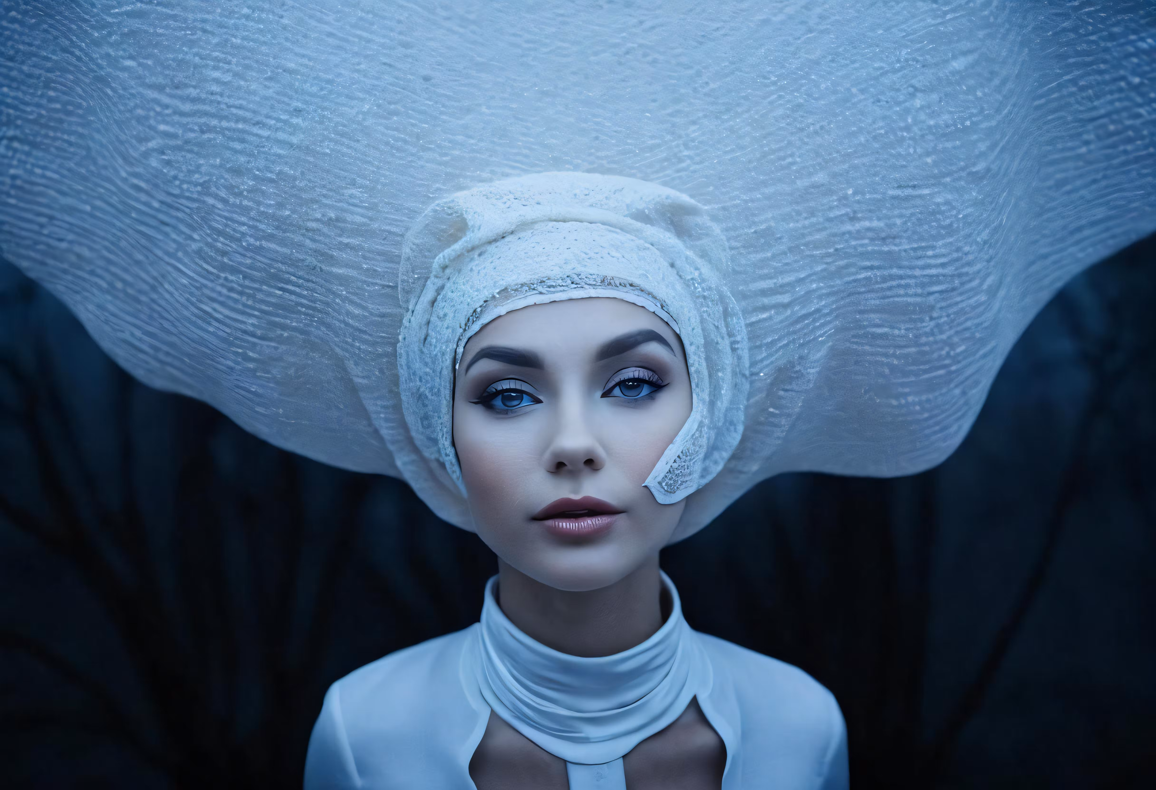 High resolution picture, free to use, a woman with white clothing on her head is posing