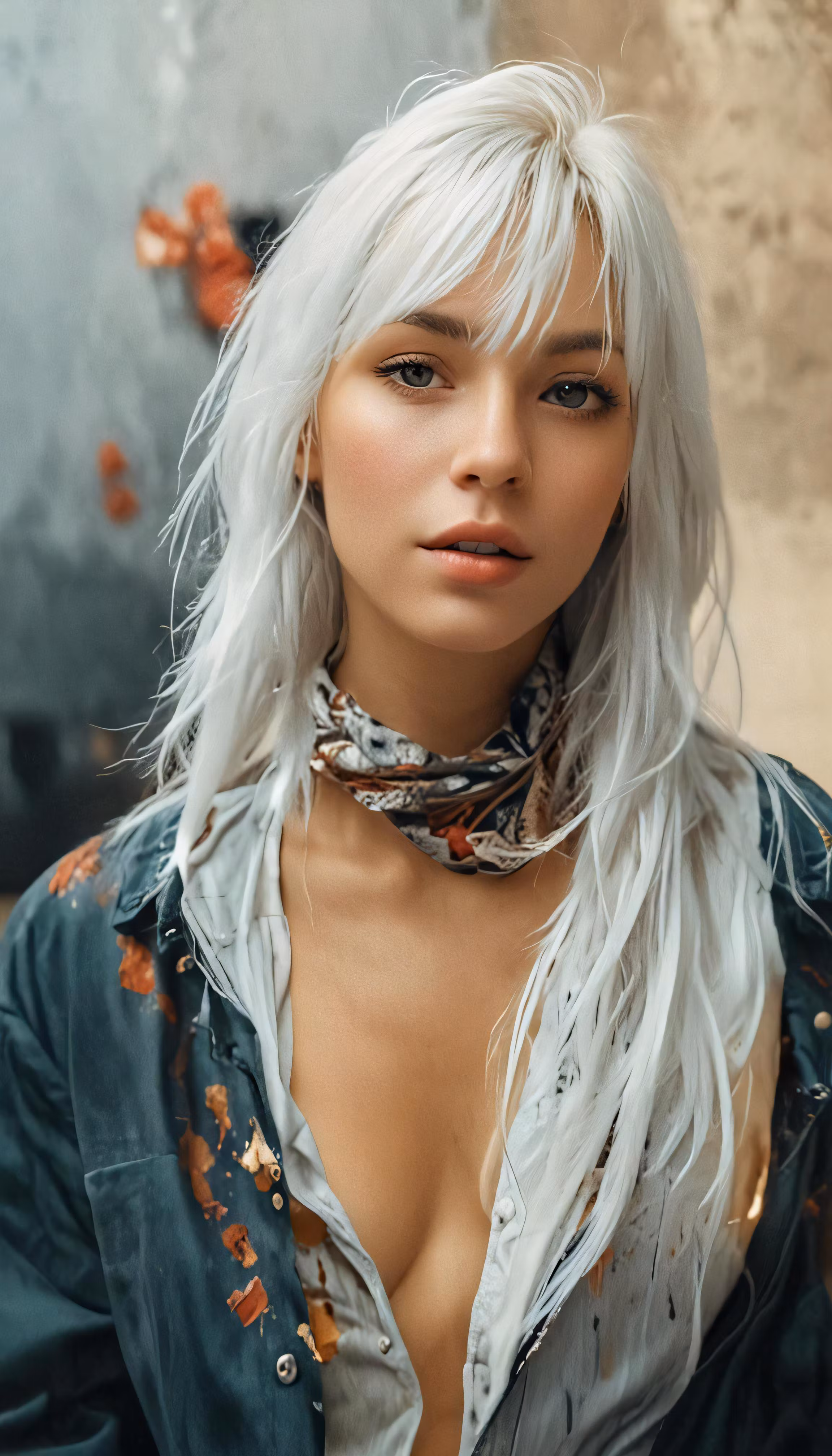High resolution picture, free to use, a woman with white hair and a scarf around her neck