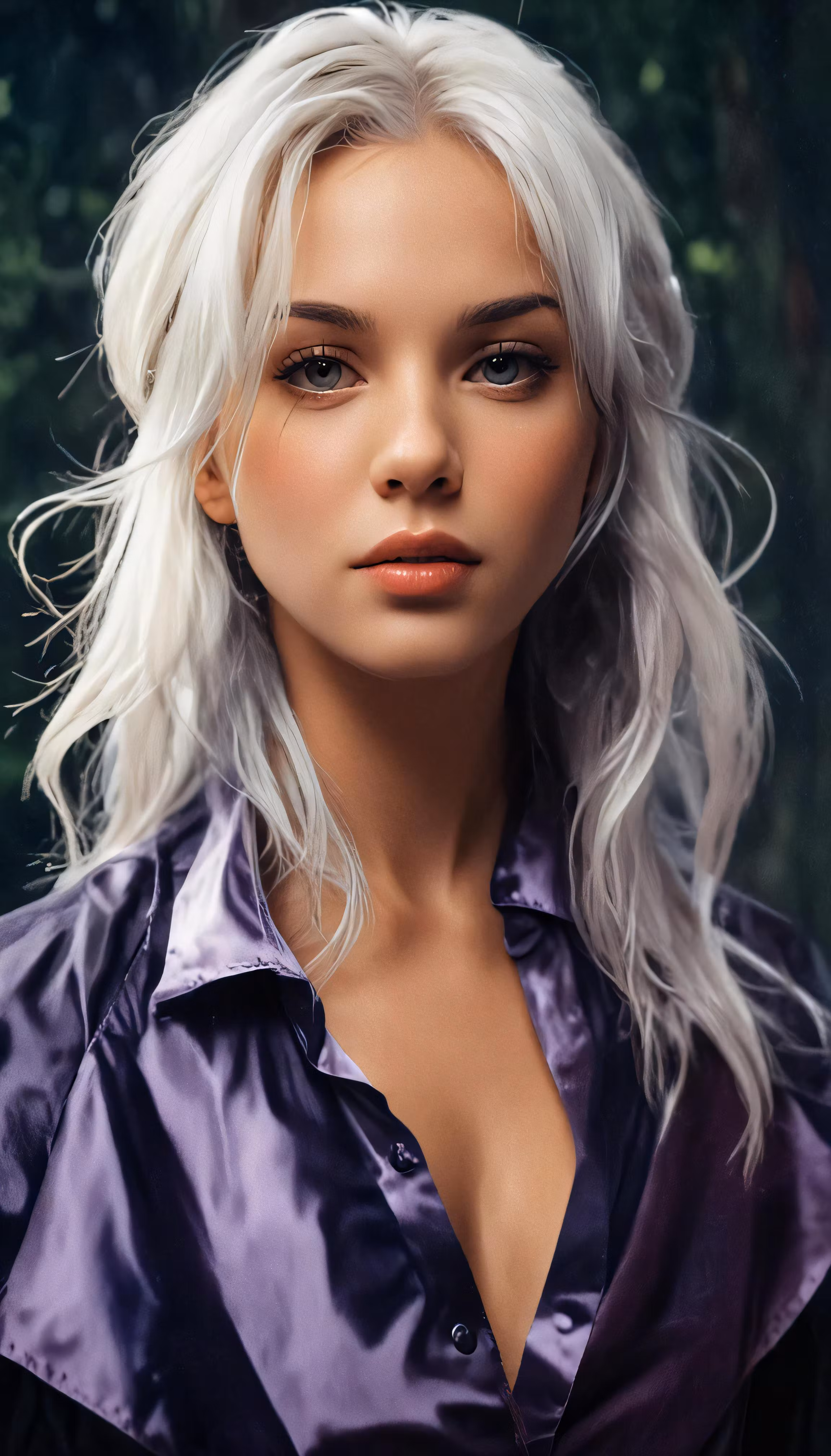High resolution picture, free to use, a woman with white hair is looking to the side