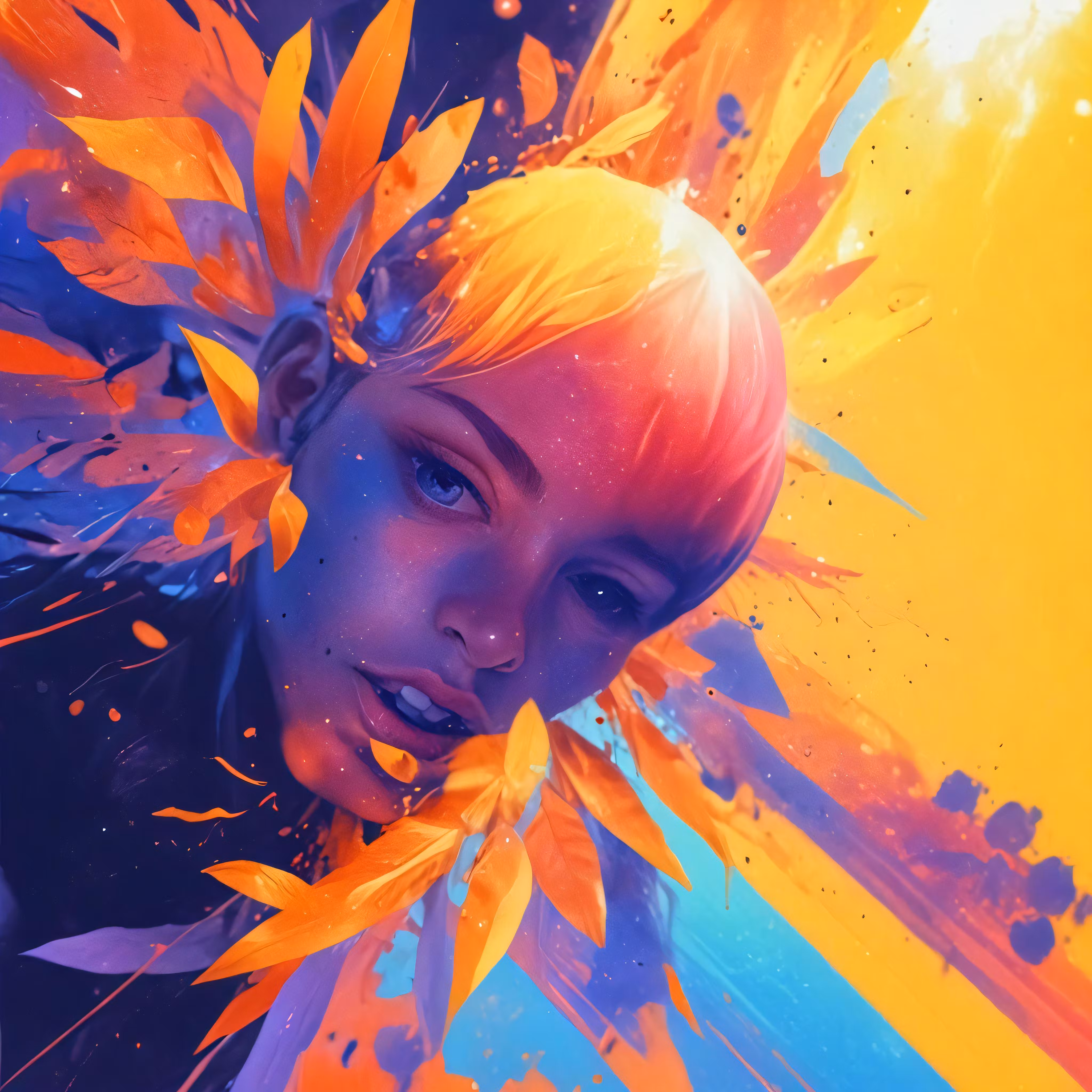 High resolution picture, free to use, a woman with yellow hair with orange flowers around her neck