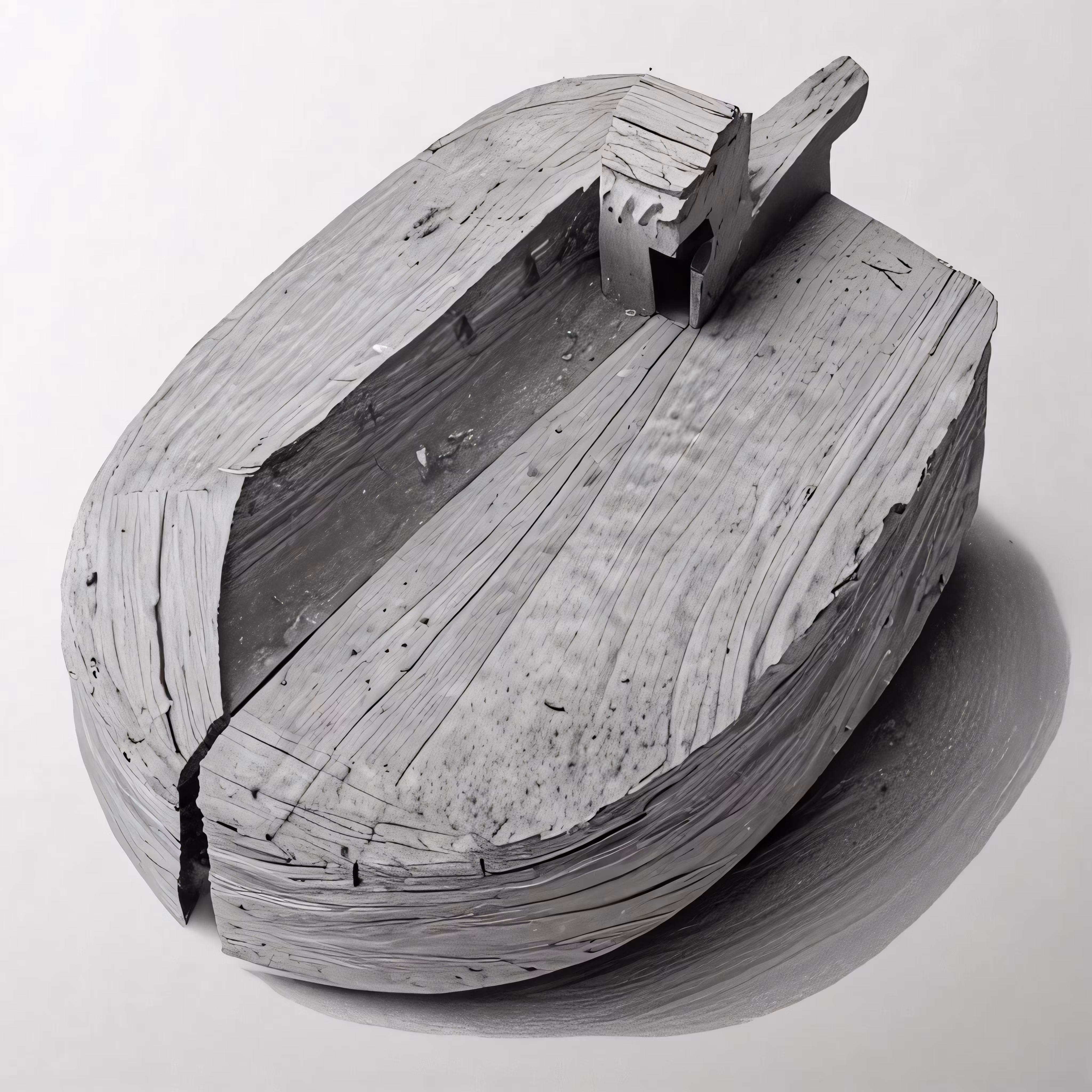 High resolution picture, free to use, a wooden boat sitting on top of a white surface