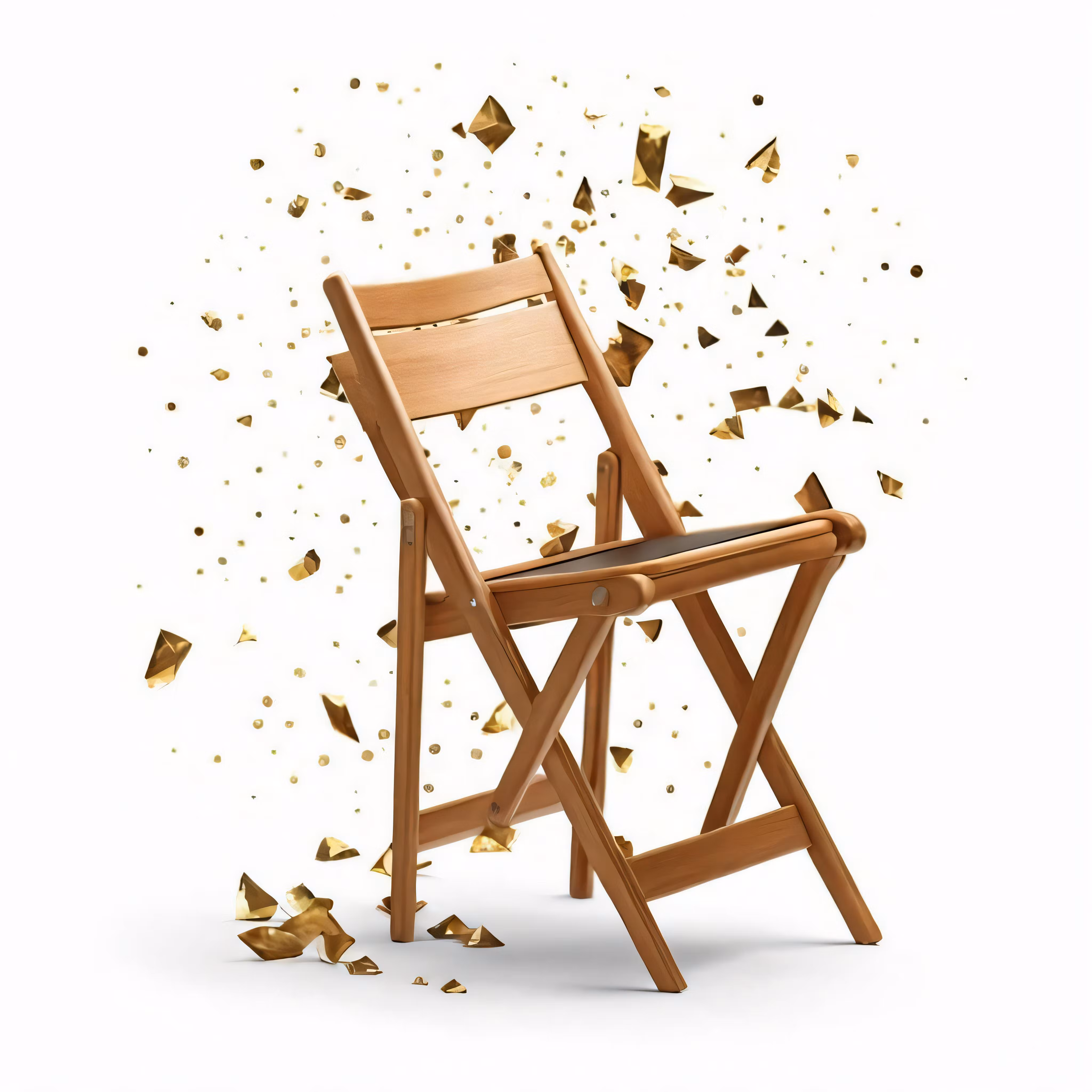 High resolution picture, free to use, a wooden chair is shown with gold scattered paper