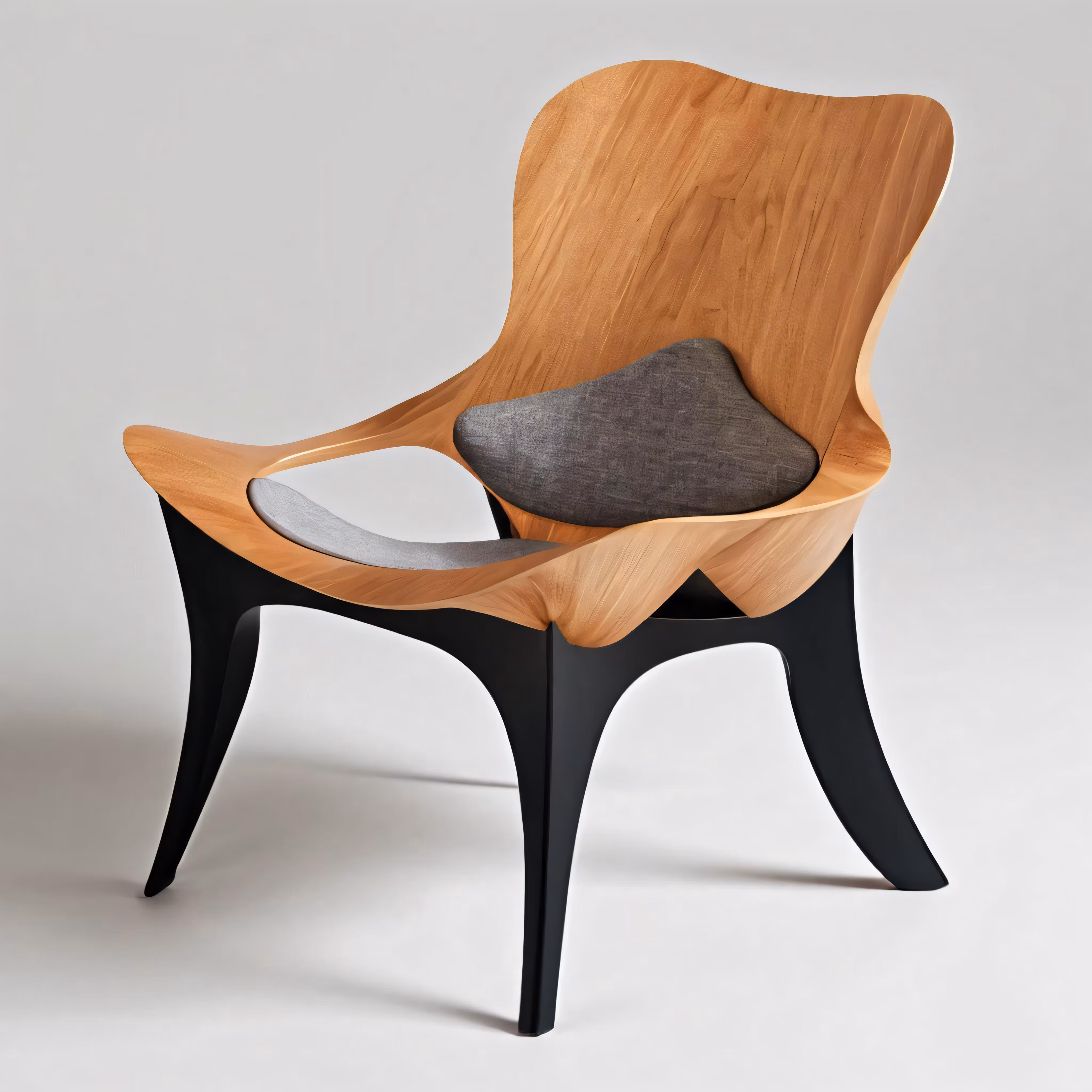 High resolution picture, free to use, a wooden chair on white background with black legs