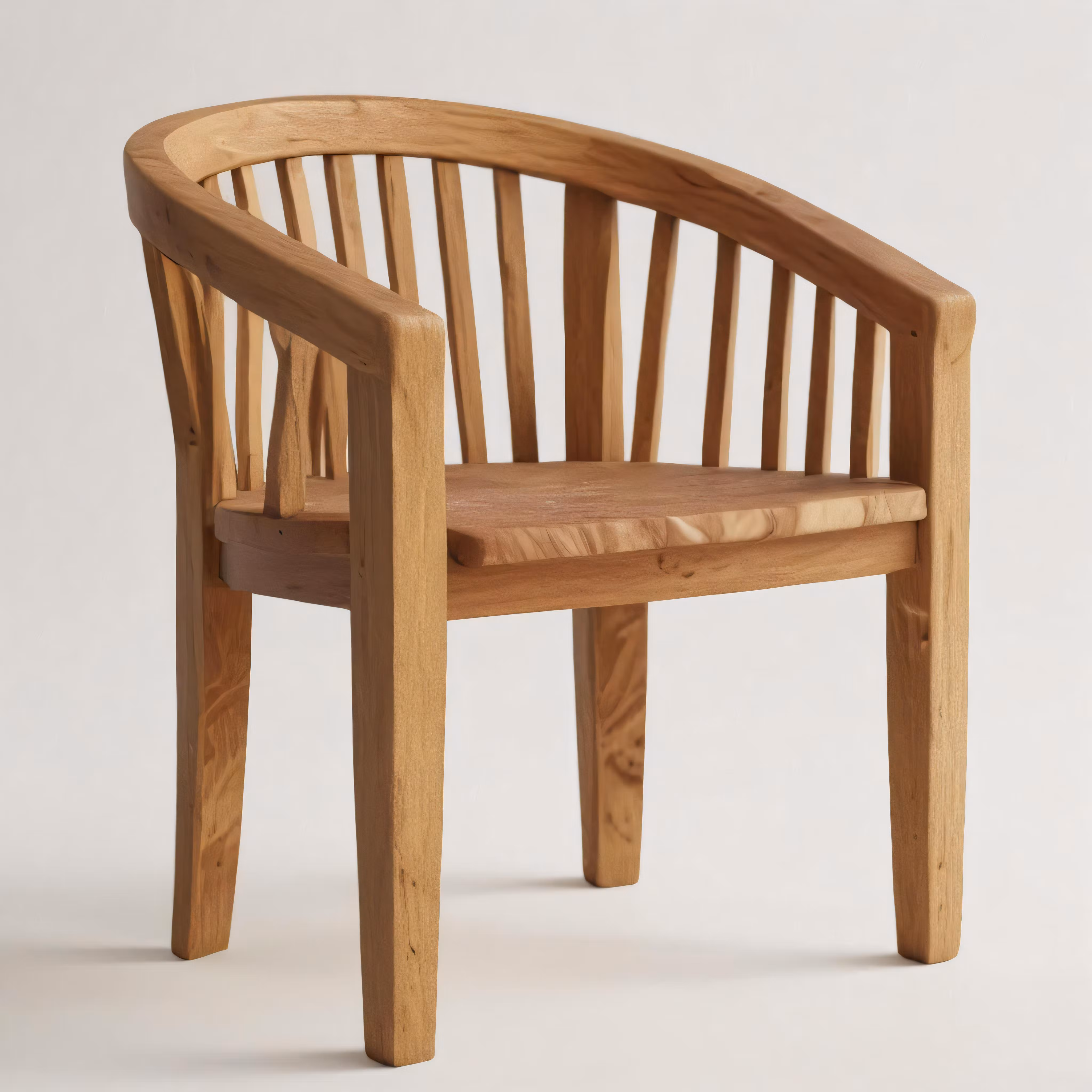 High resolution picture, free to use, a wooden chair with a armrest made from natural wood
