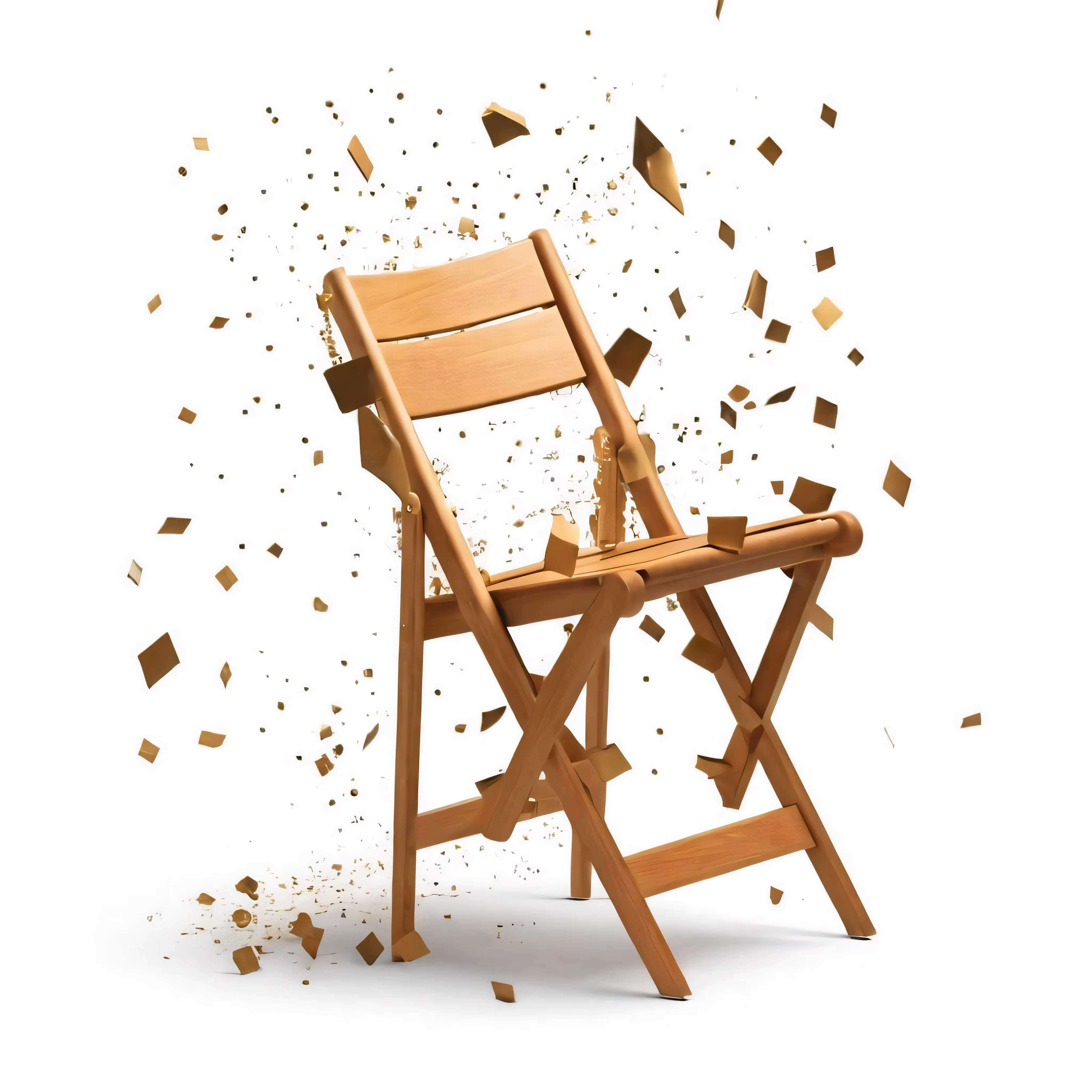 High resolution picture, free to use, a wooden folding chair and a lot of debris