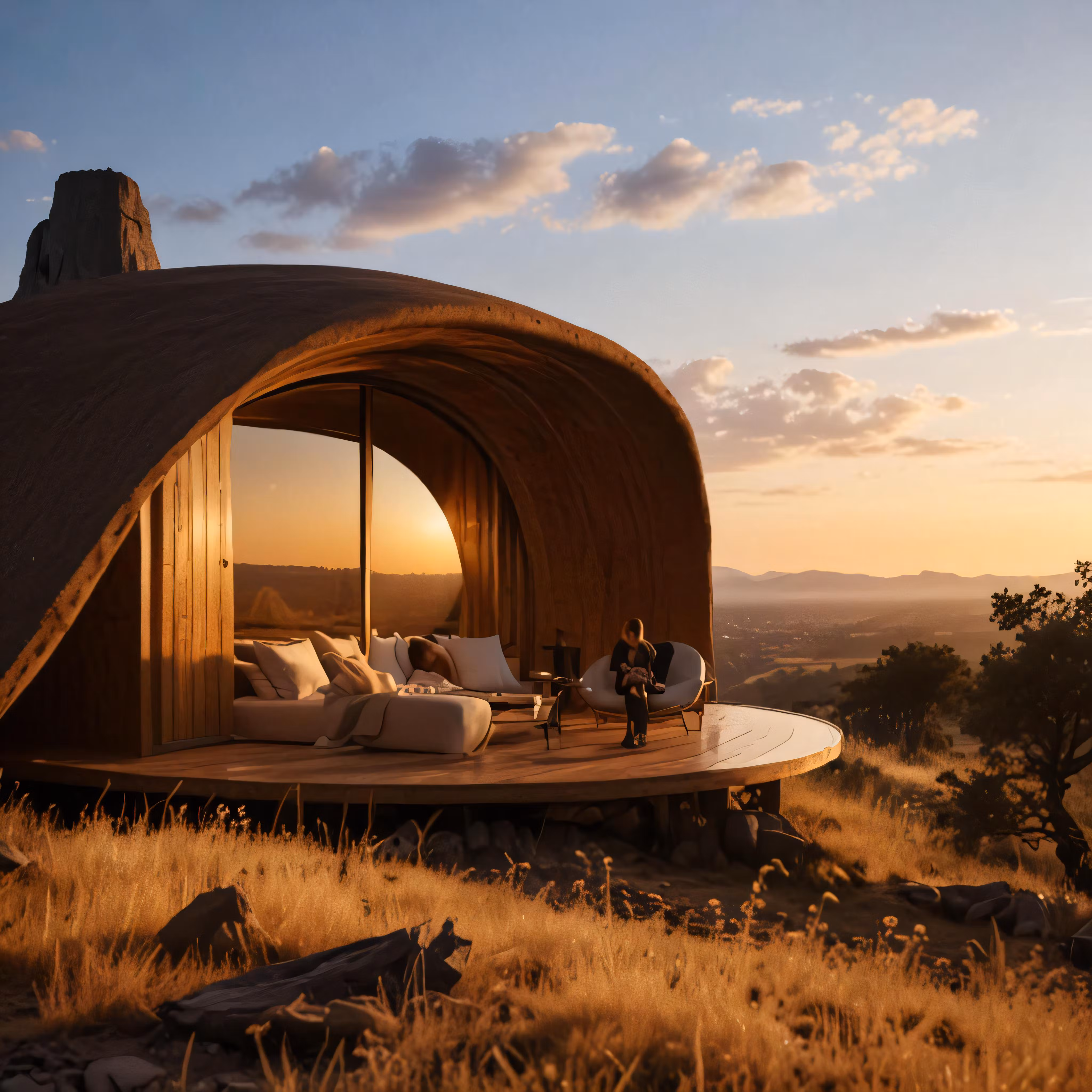 High resolution picture, free to use, a wooden structure has been designed to resemble a tent