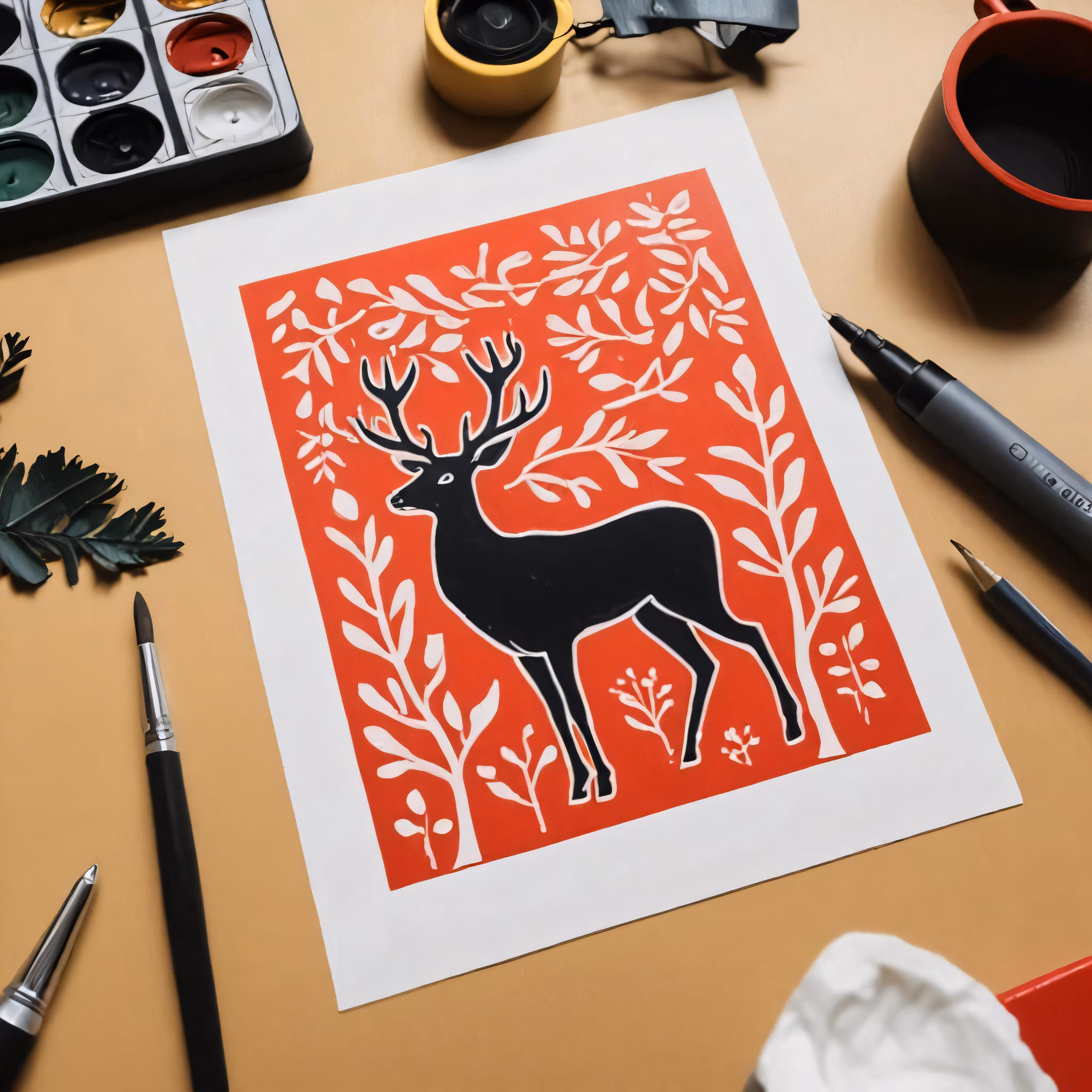 High resolution picture, free to use, a workbook with paper cut art featuring a deer