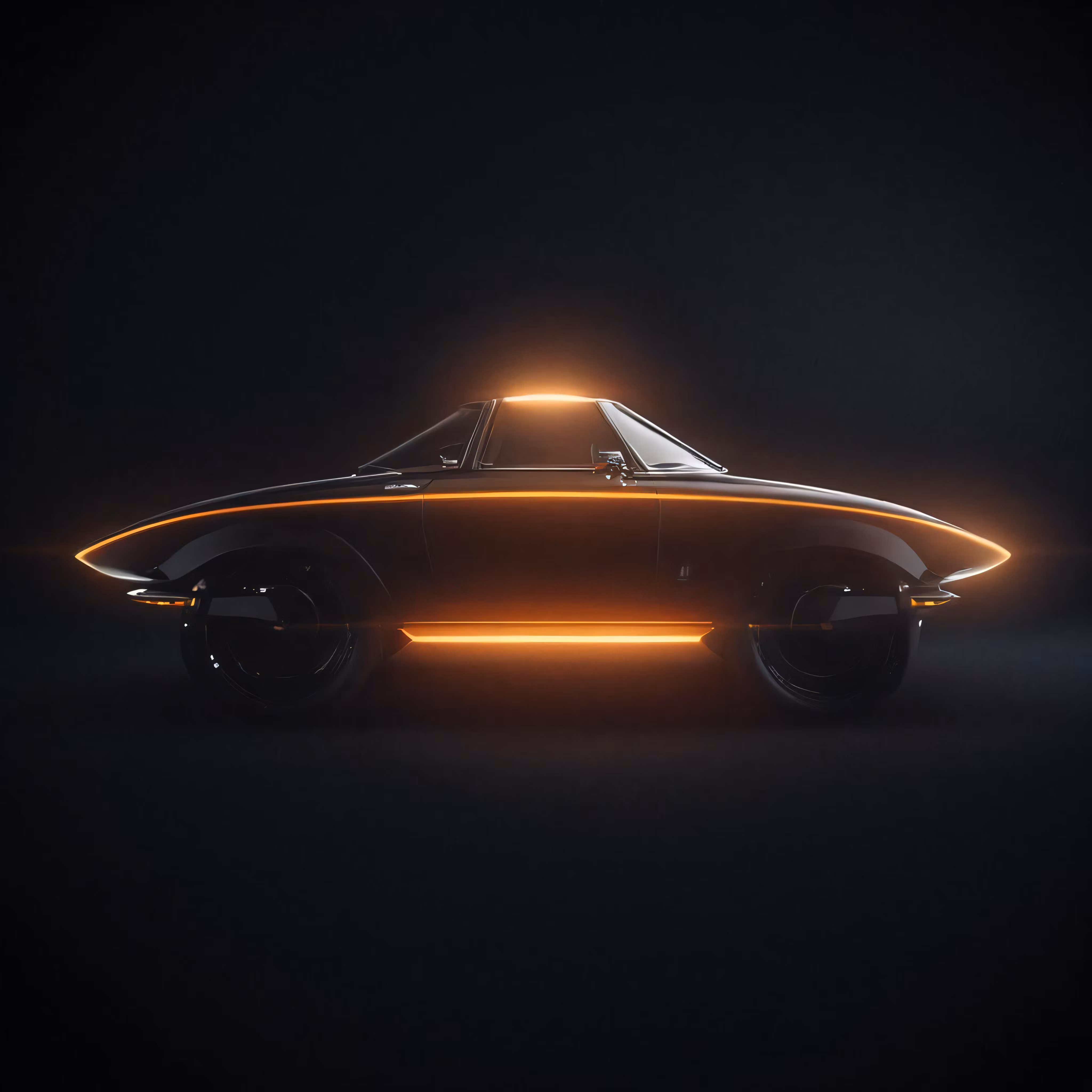 High resolution picture, free to use, a yellow and black vehicle with its light on
