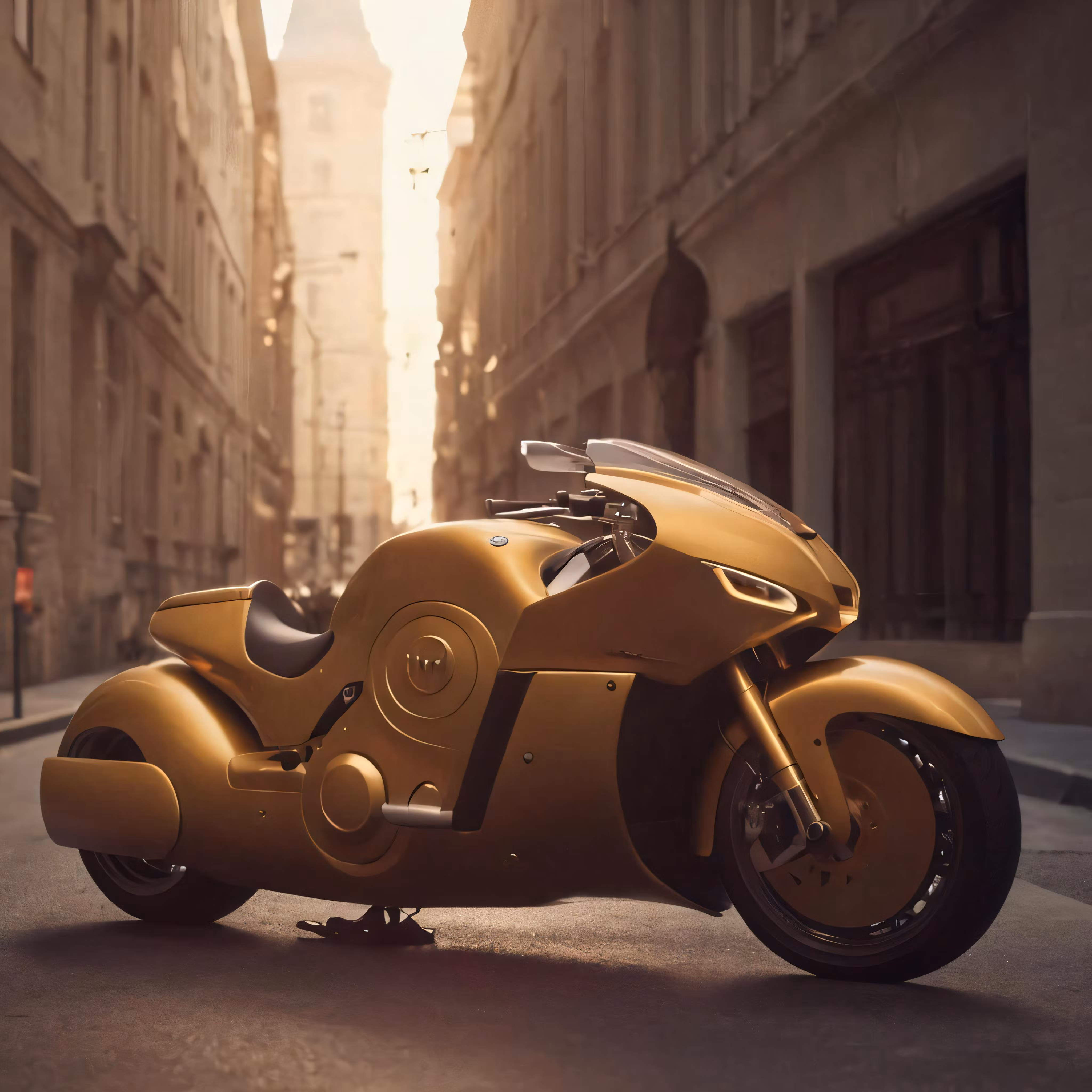 High resolution picture, free to use, a yellow motorcycle parked on the side of the road