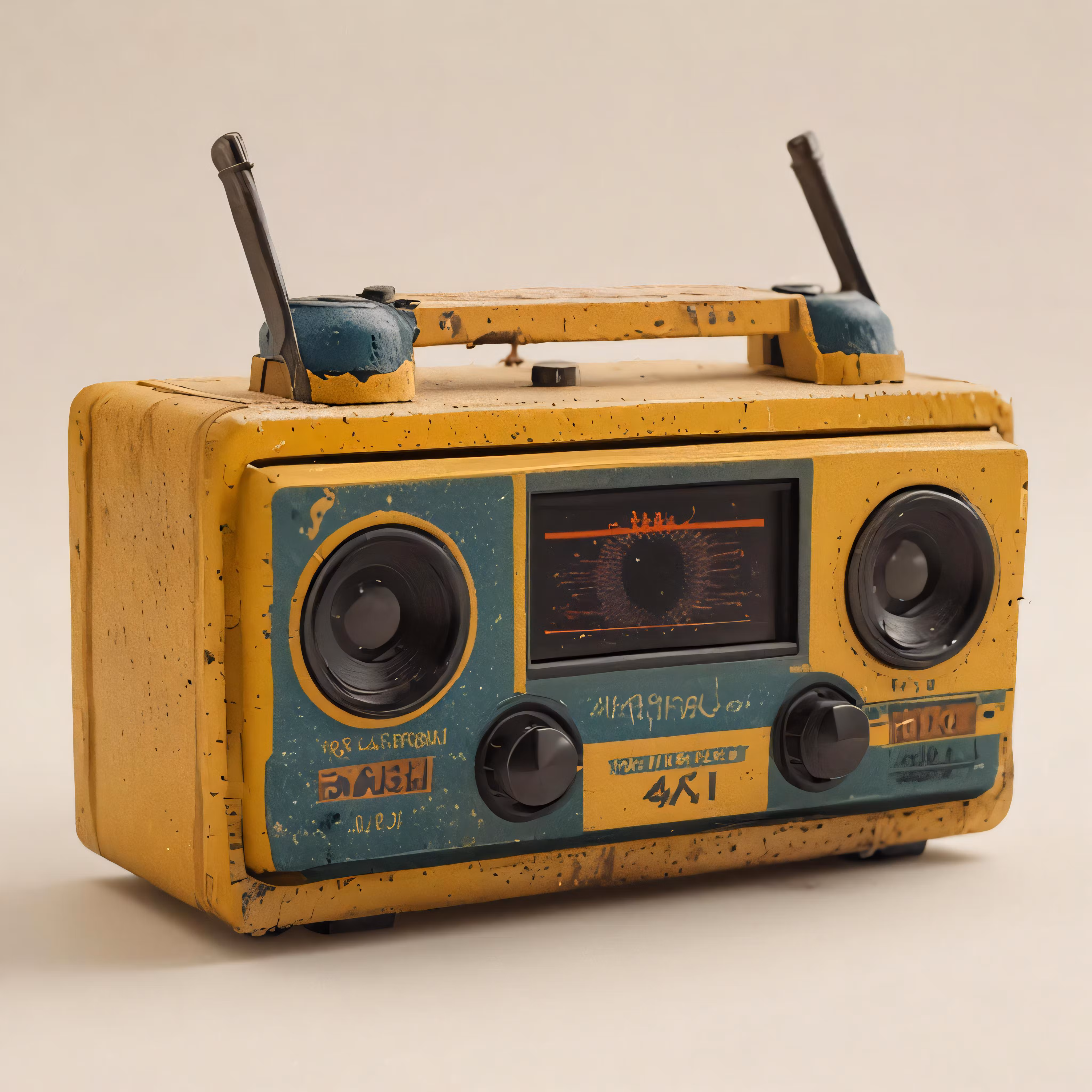 High resolution picture, free to use, a yellow radio with black dials sits on a table