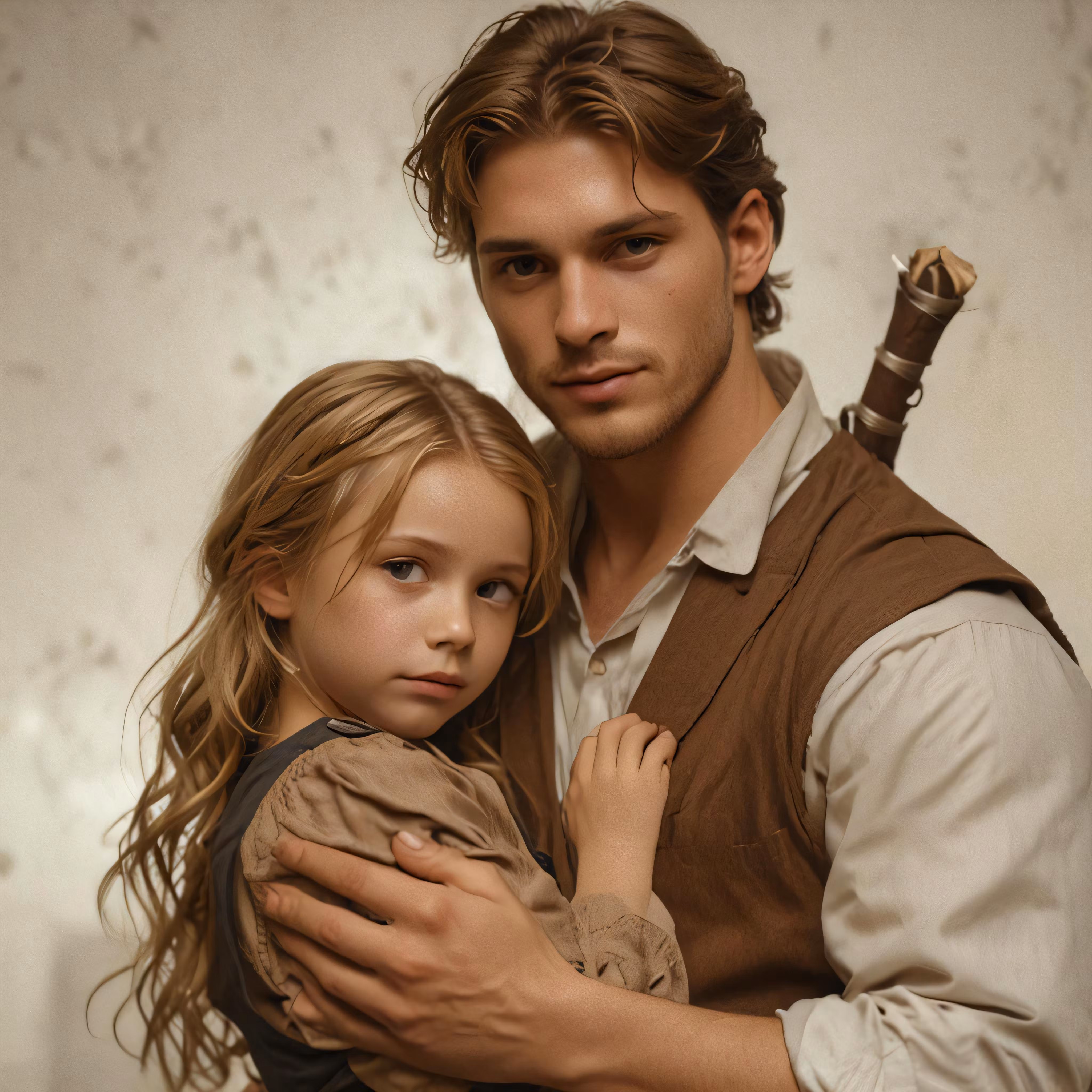 High resolution picture, free to use, a young boy with long blonde hair hugging a younger woman