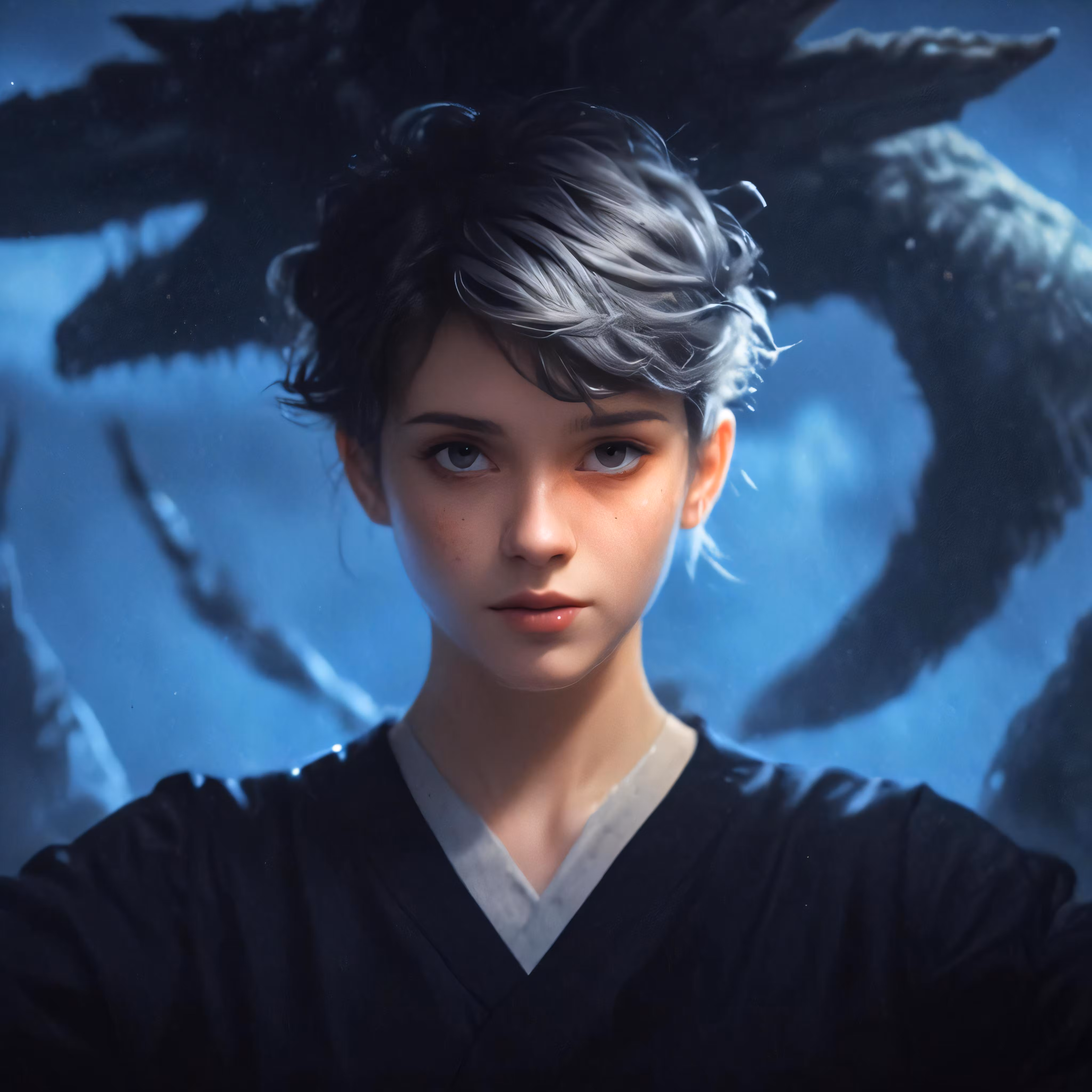 High resolution picture, free to use, a young girl dressed in black is staring at the camera