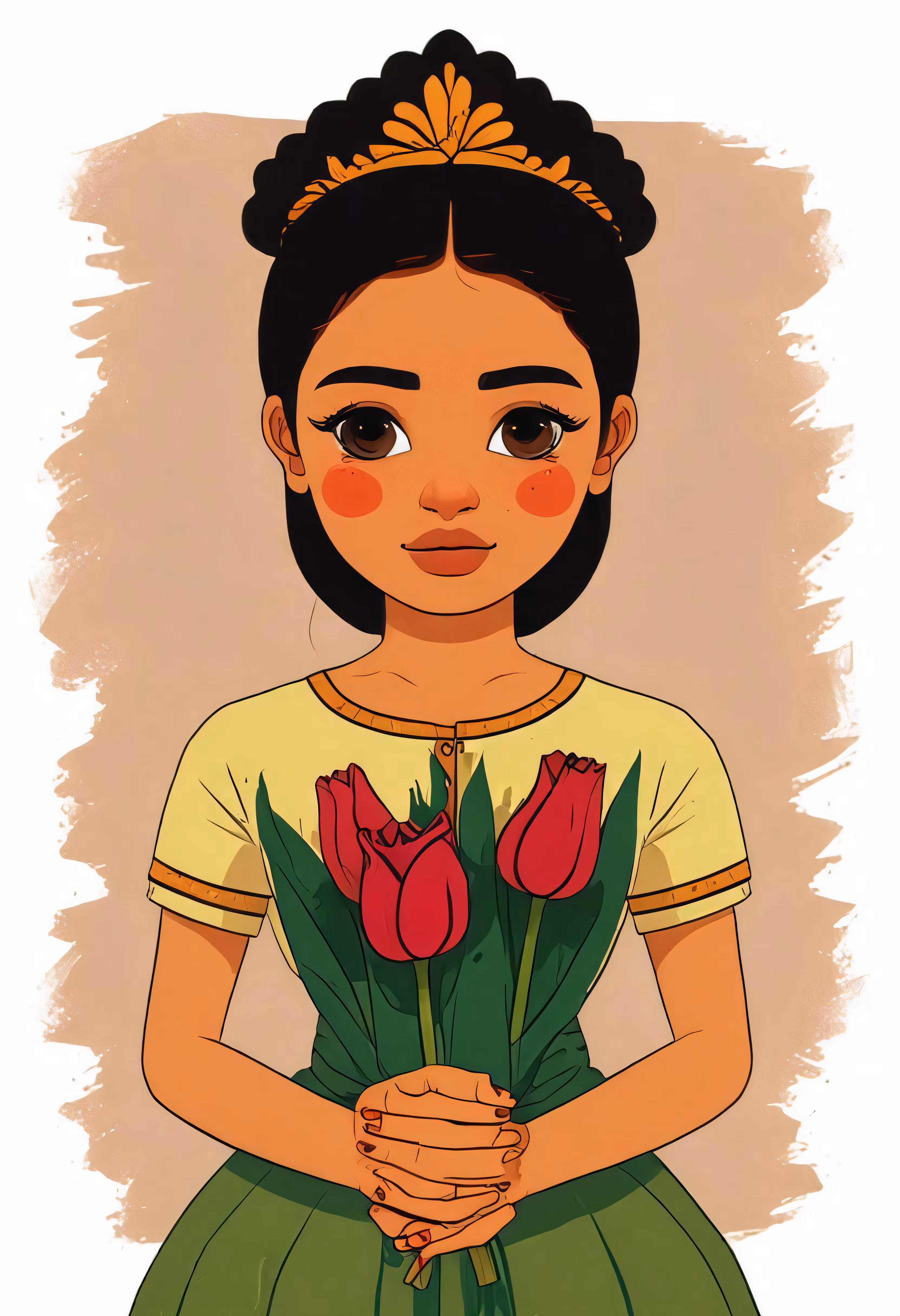 High resolution picture, free to use, a young girl holding red flowers