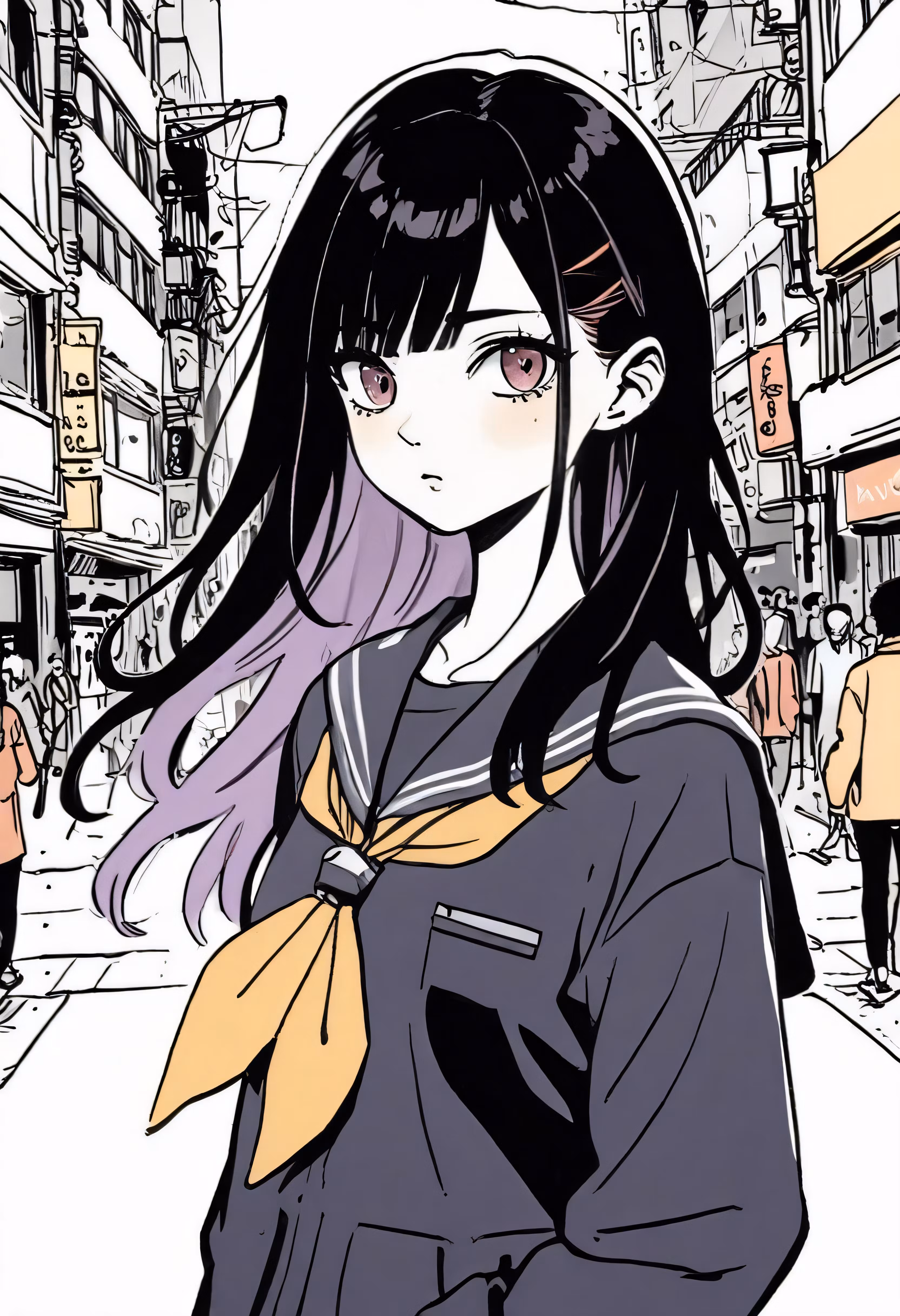 High resolution picture, free to use, a young girl standing on a street near buildings