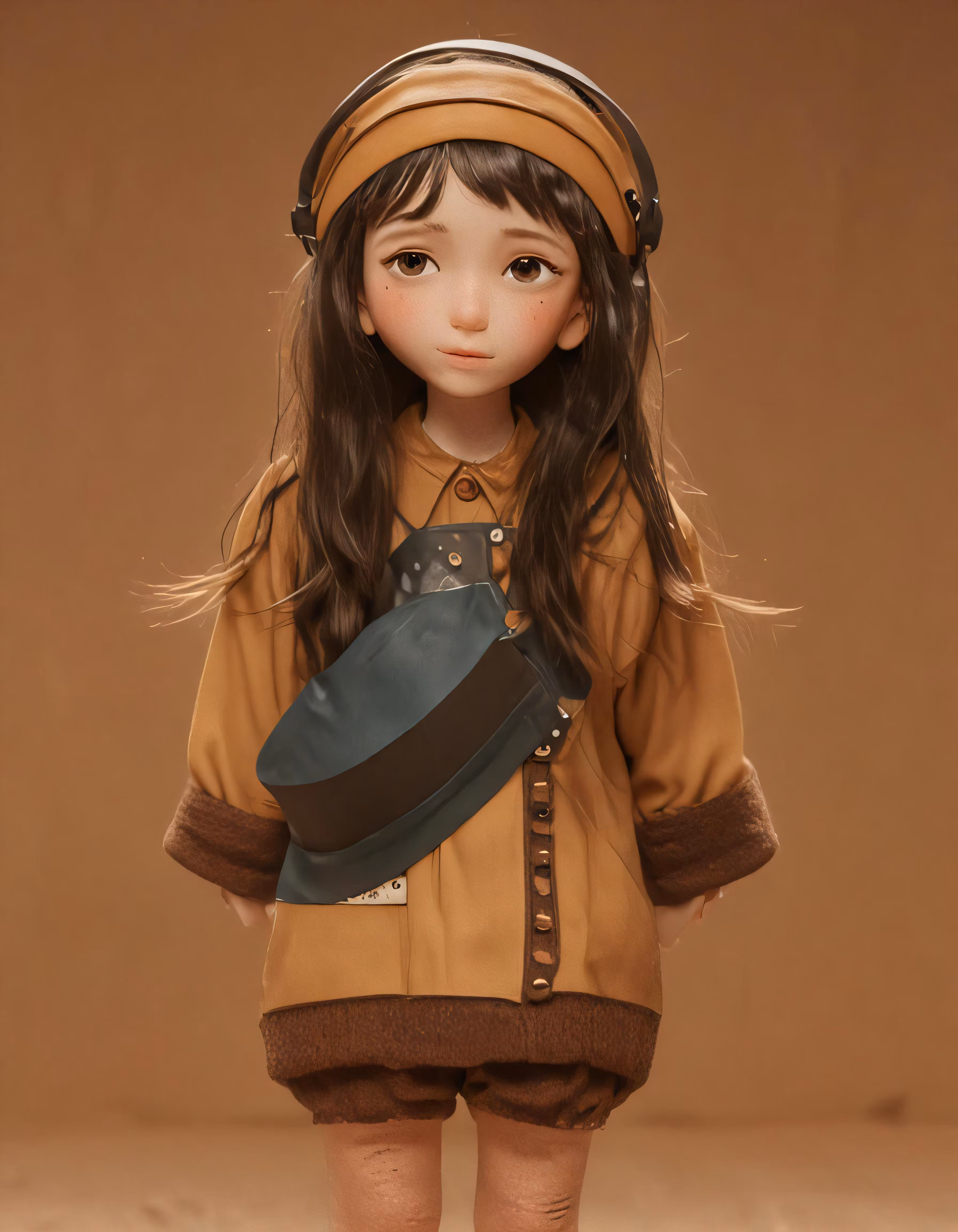 High resolution picture, free to use, a young girl wearing an army green uniform