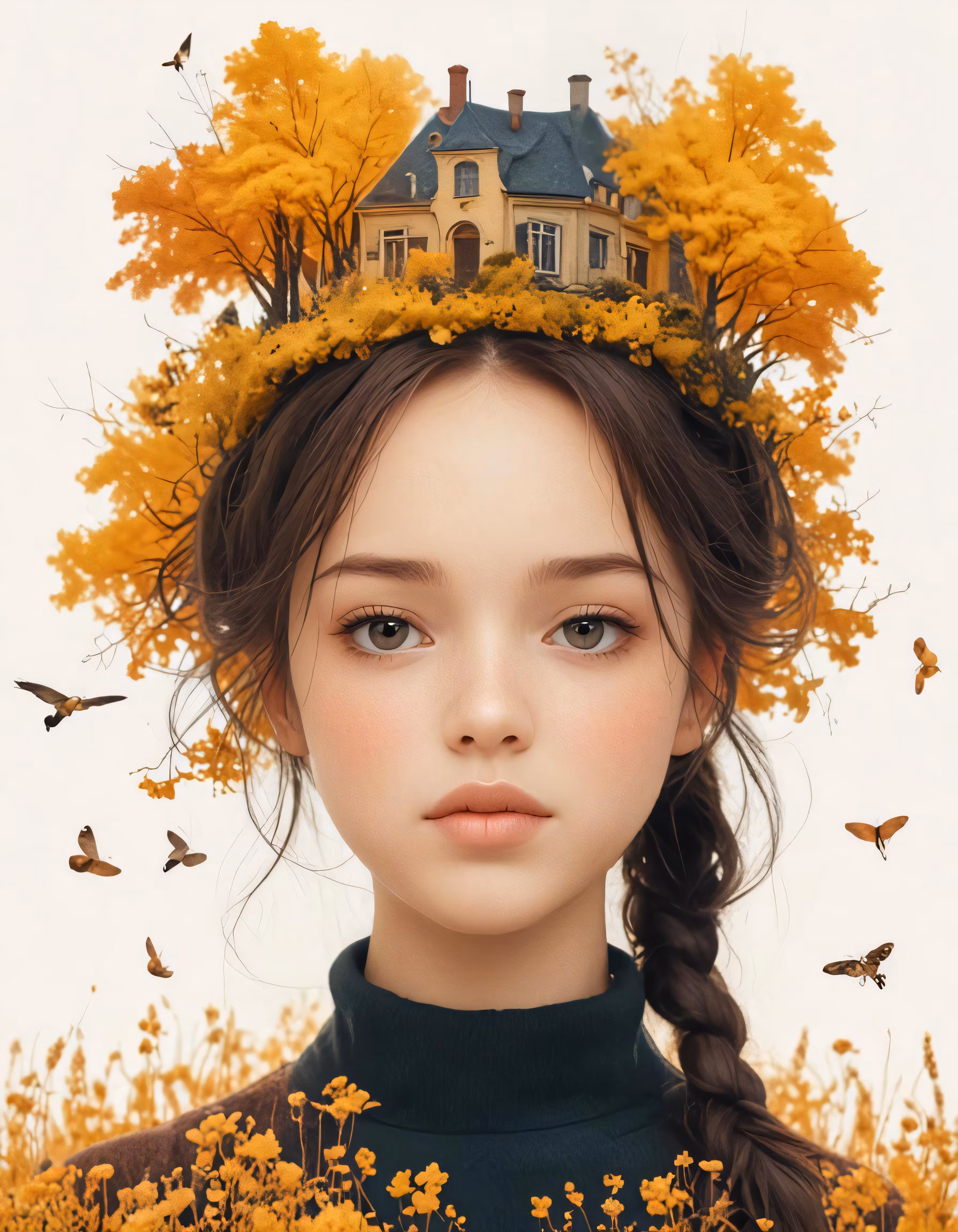 High resolution picture, free to use, a young girl with a beautiful yellow crown on her head