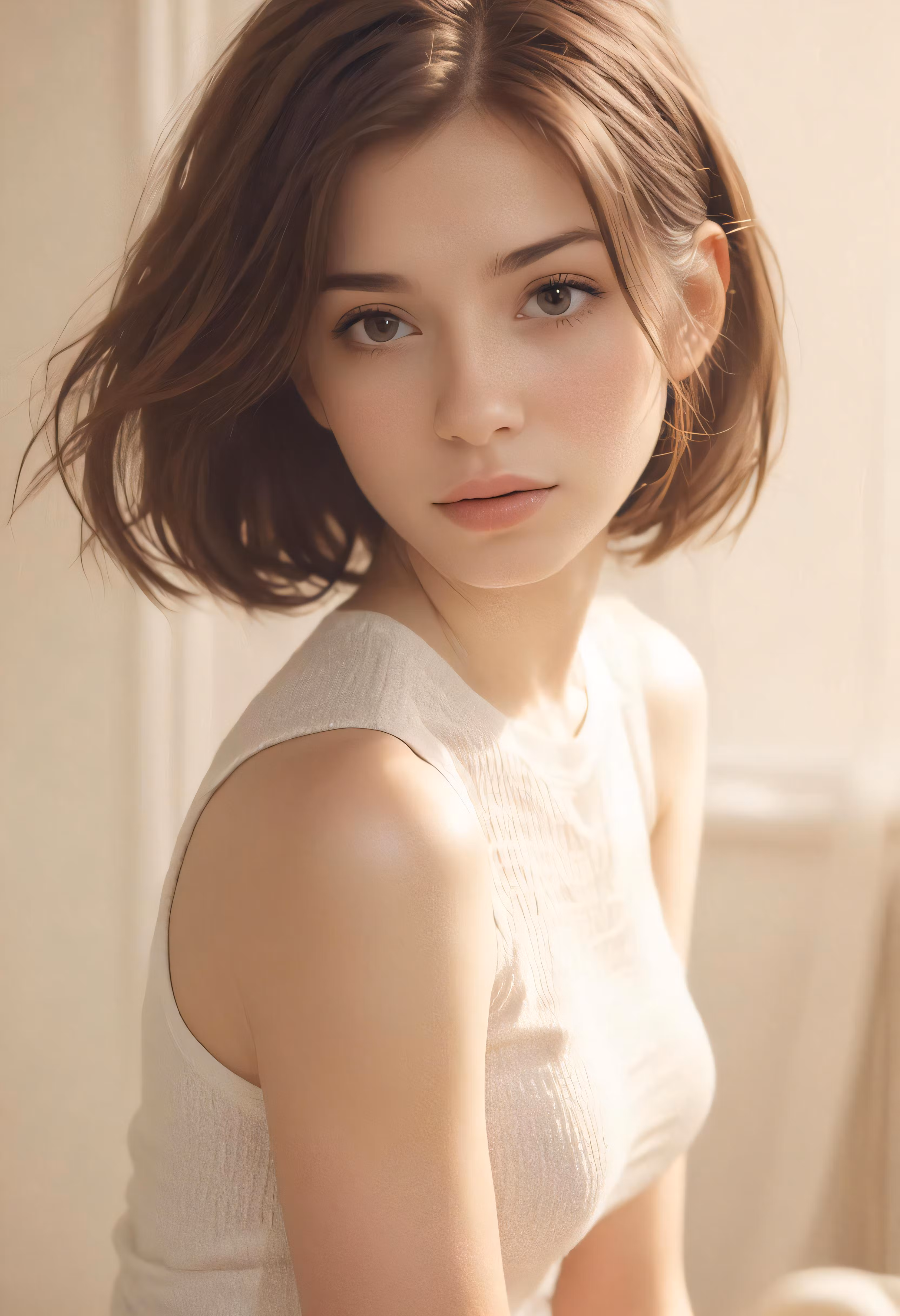 High resolution picture, free to use, a young lady with a white top standing near a wall