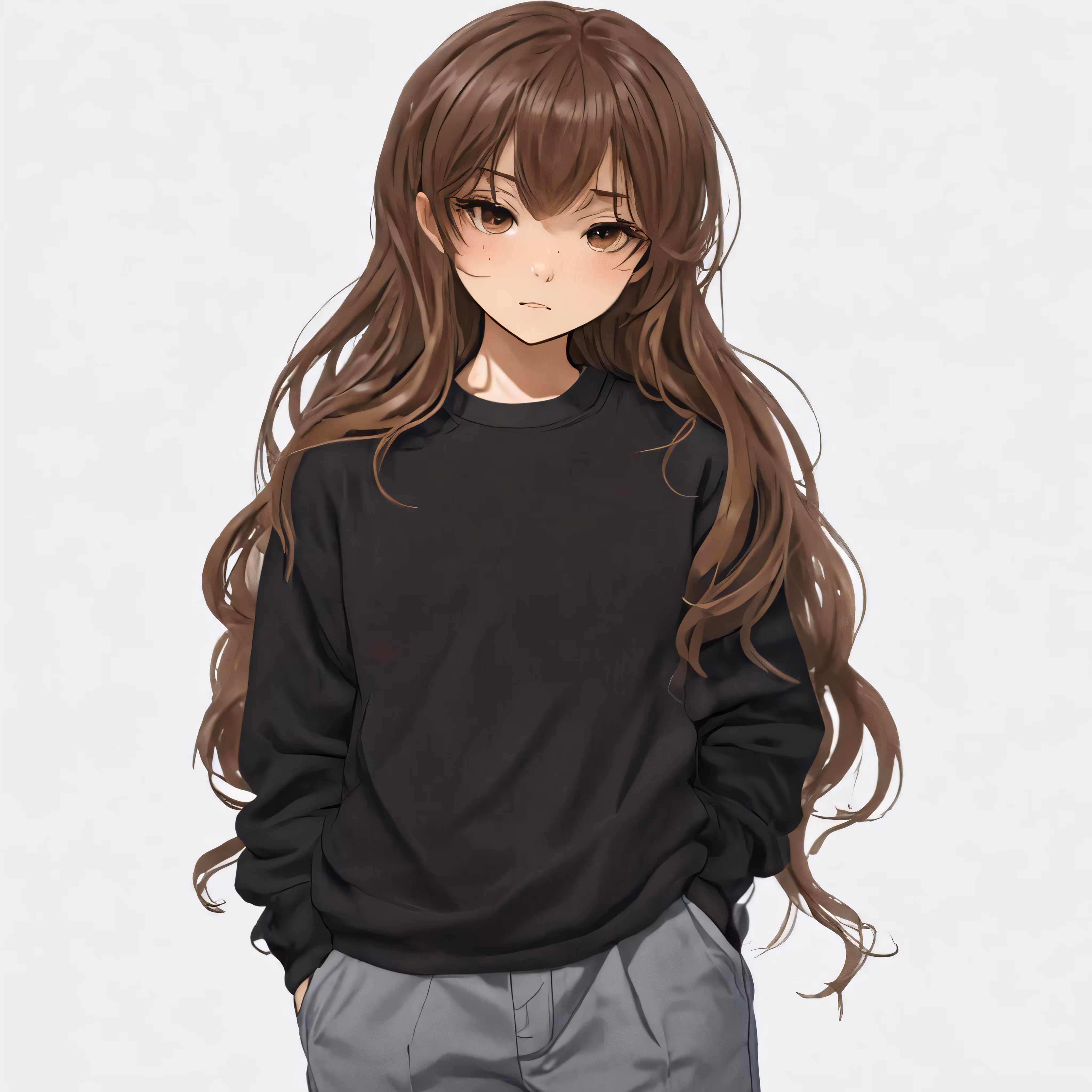 High resolution picture, free to use, a young person with long hair wearing black shirt