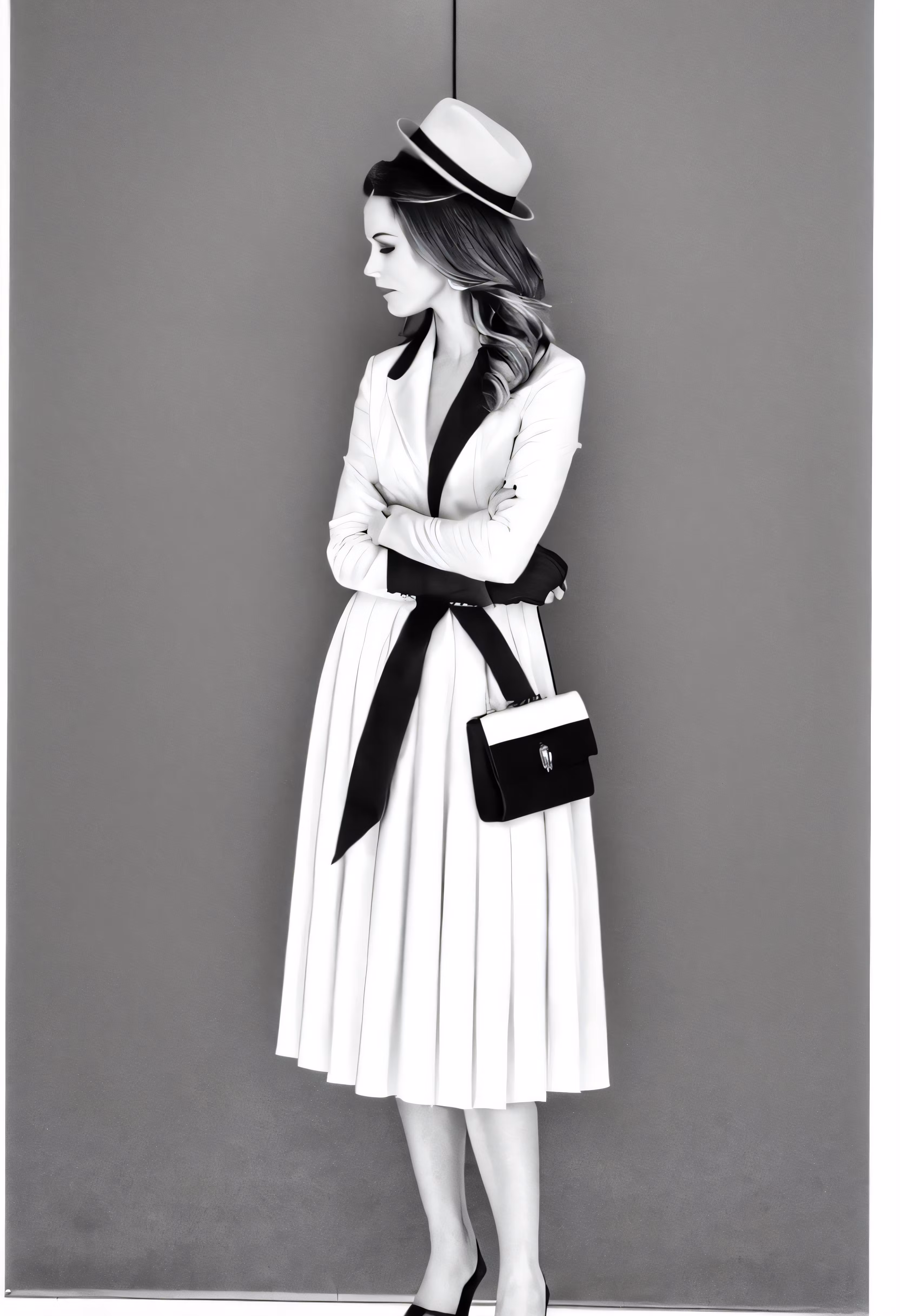 High resolution picture, free to use, a young woman dressed in vintage clothing and hats