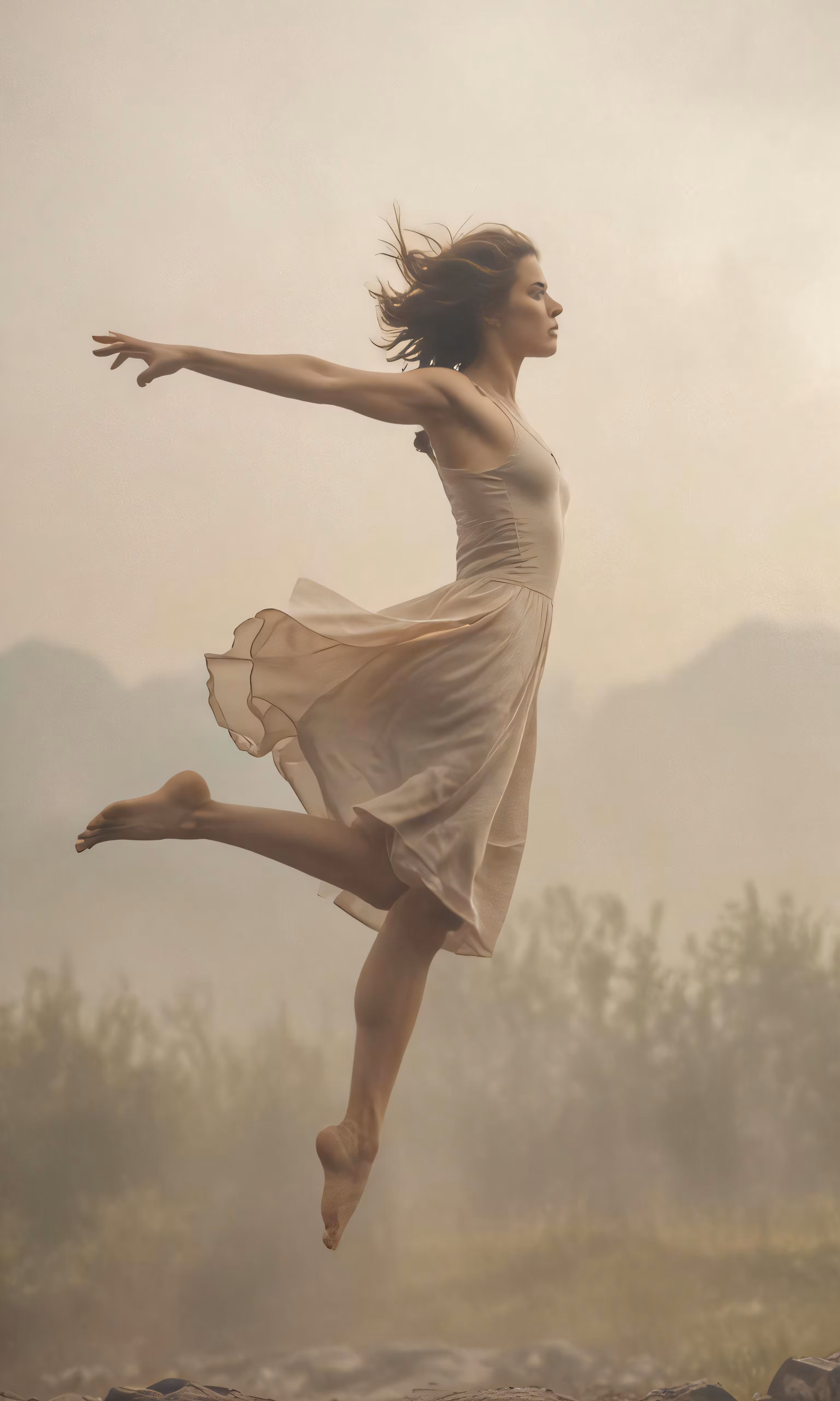 High resolution picture, free to use, a young woman in a dress dancing with a bare back