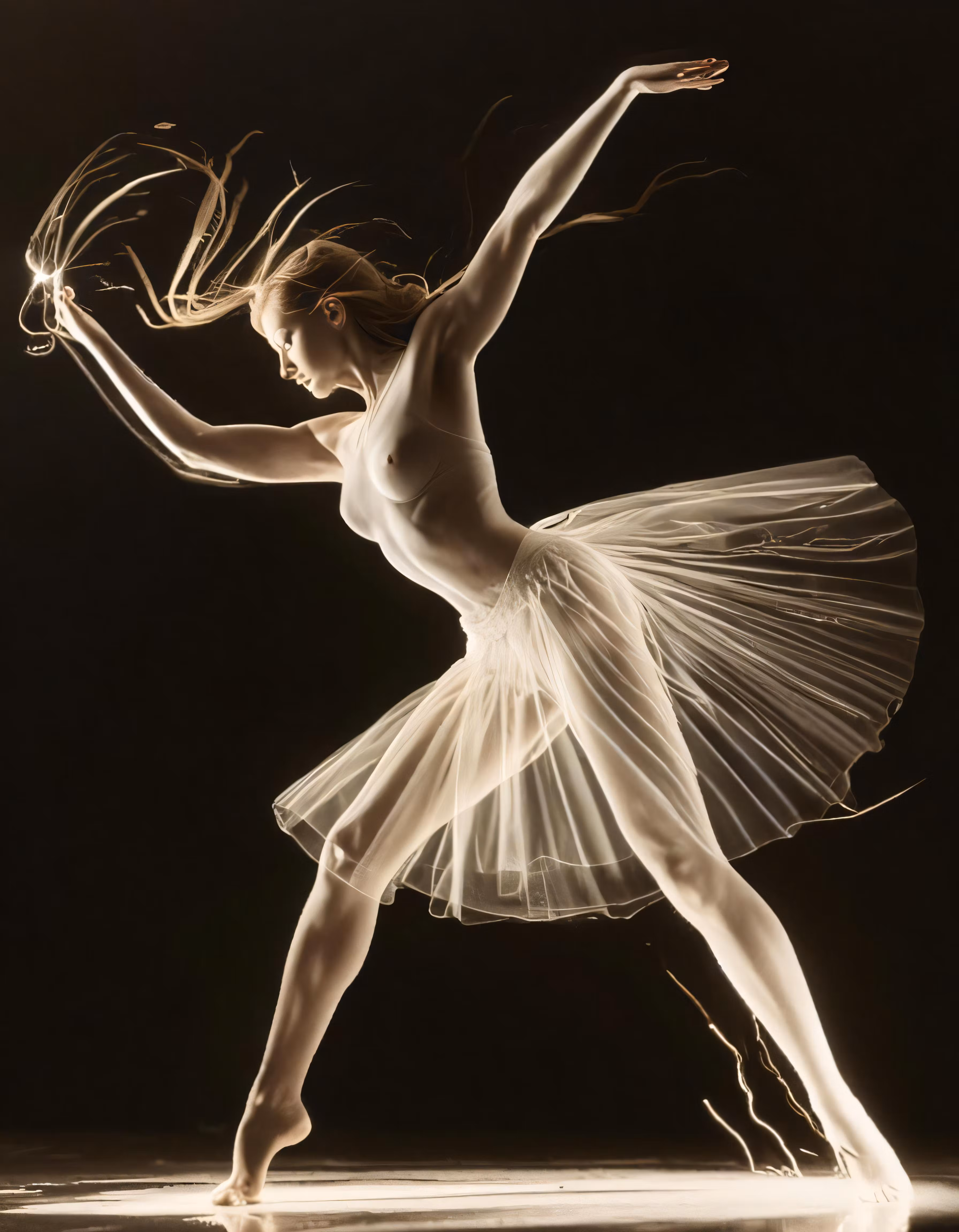 High resolution picture, free to use, a young woman in white and sheered clothing dancing