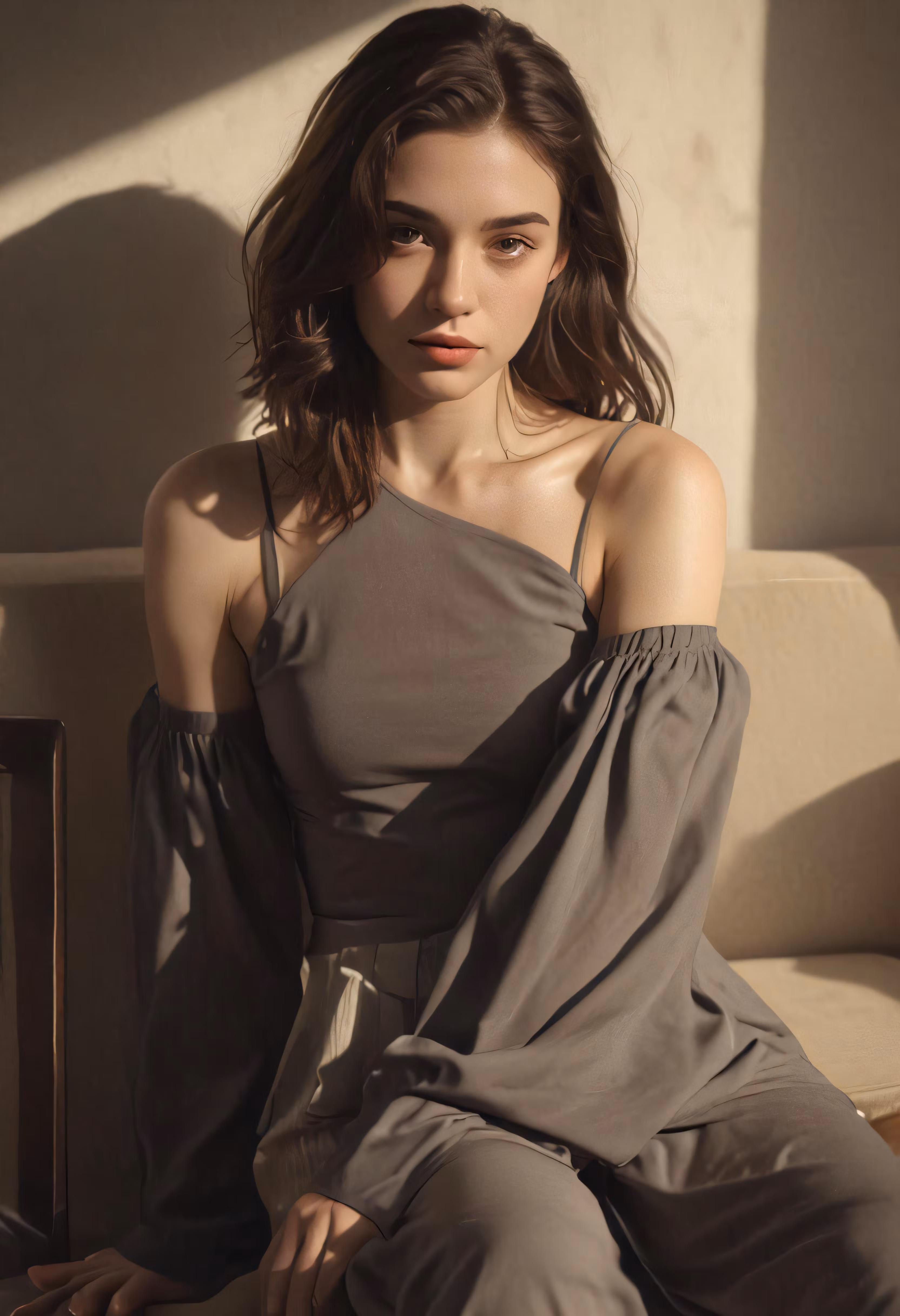 High resolution picture, free to use, a young woman is sitting and posing for the camera