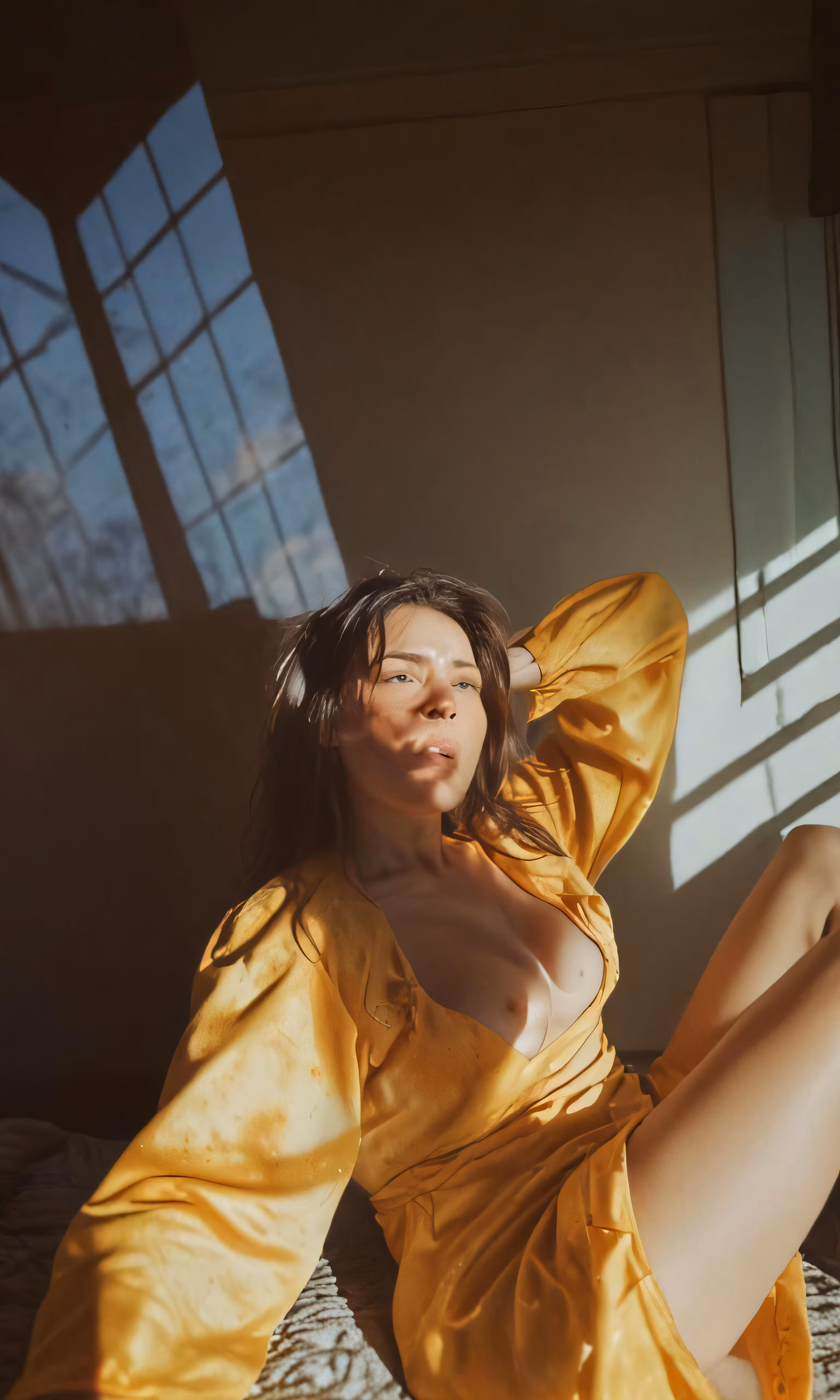 High resolution picture, free to use, a young woman is sitting on a bed and posing for the camera