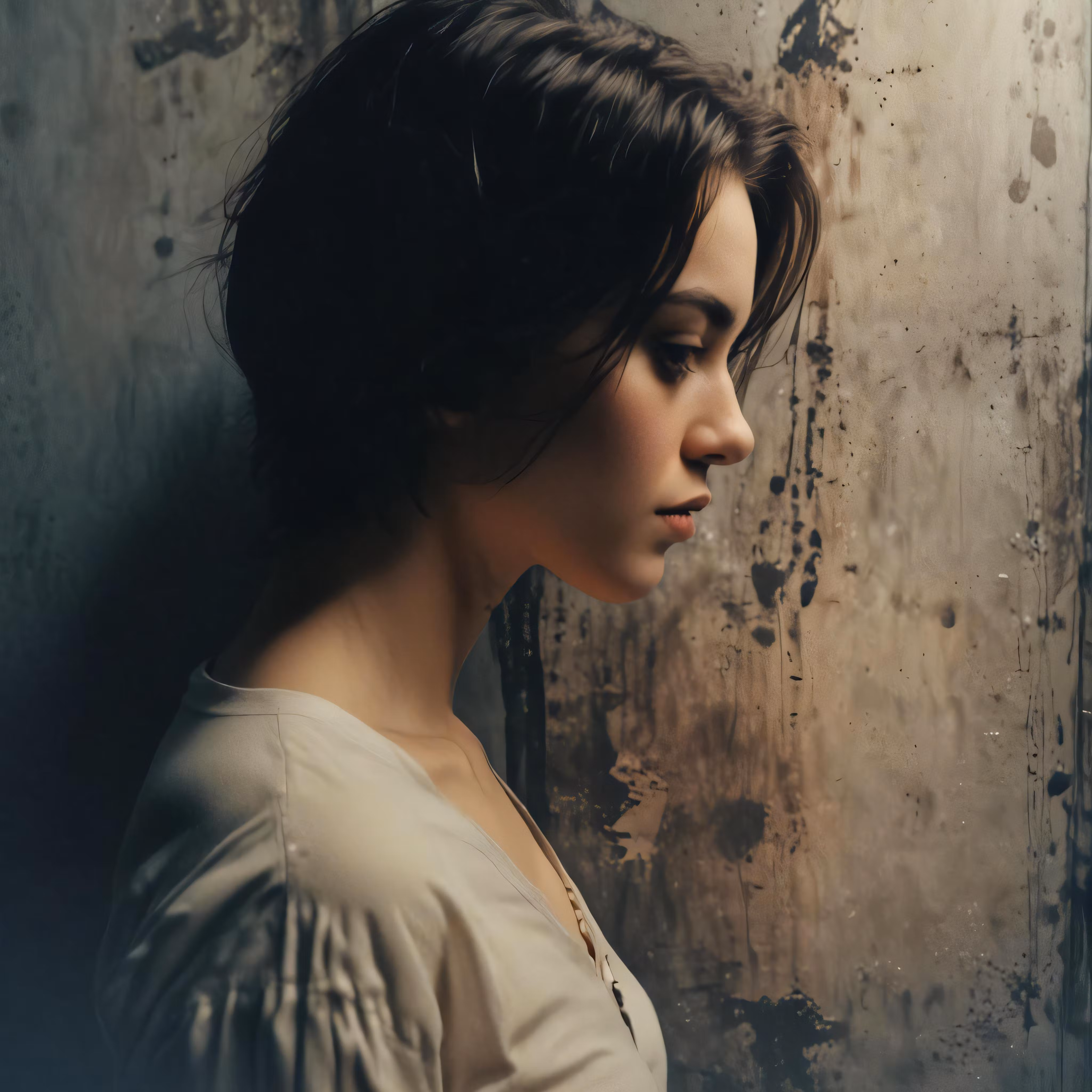 High resolution picture, free to use, a young woman looks out through a rusty window