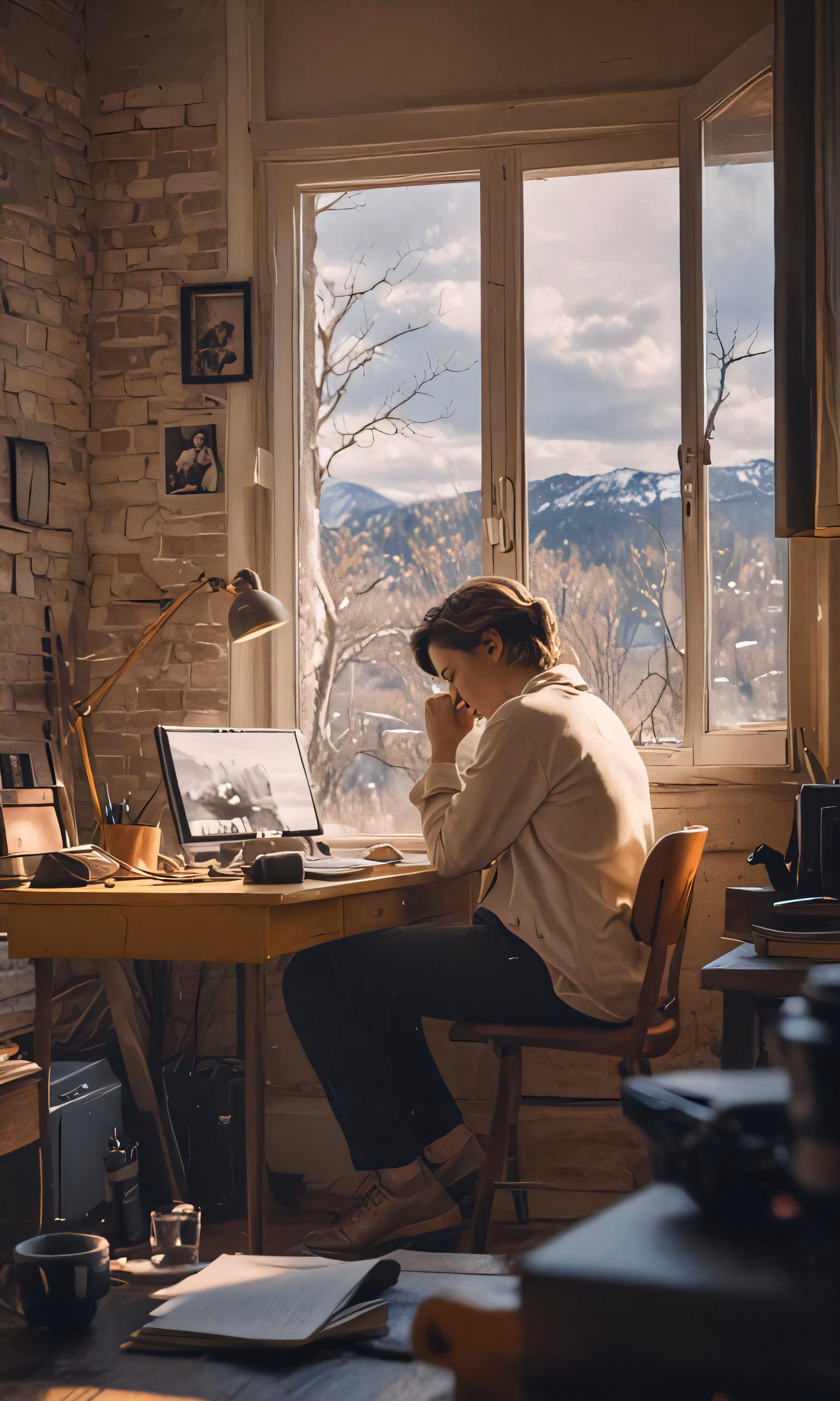 High resolution picture, free to use, a young woman sitting at a table with a laptop computer