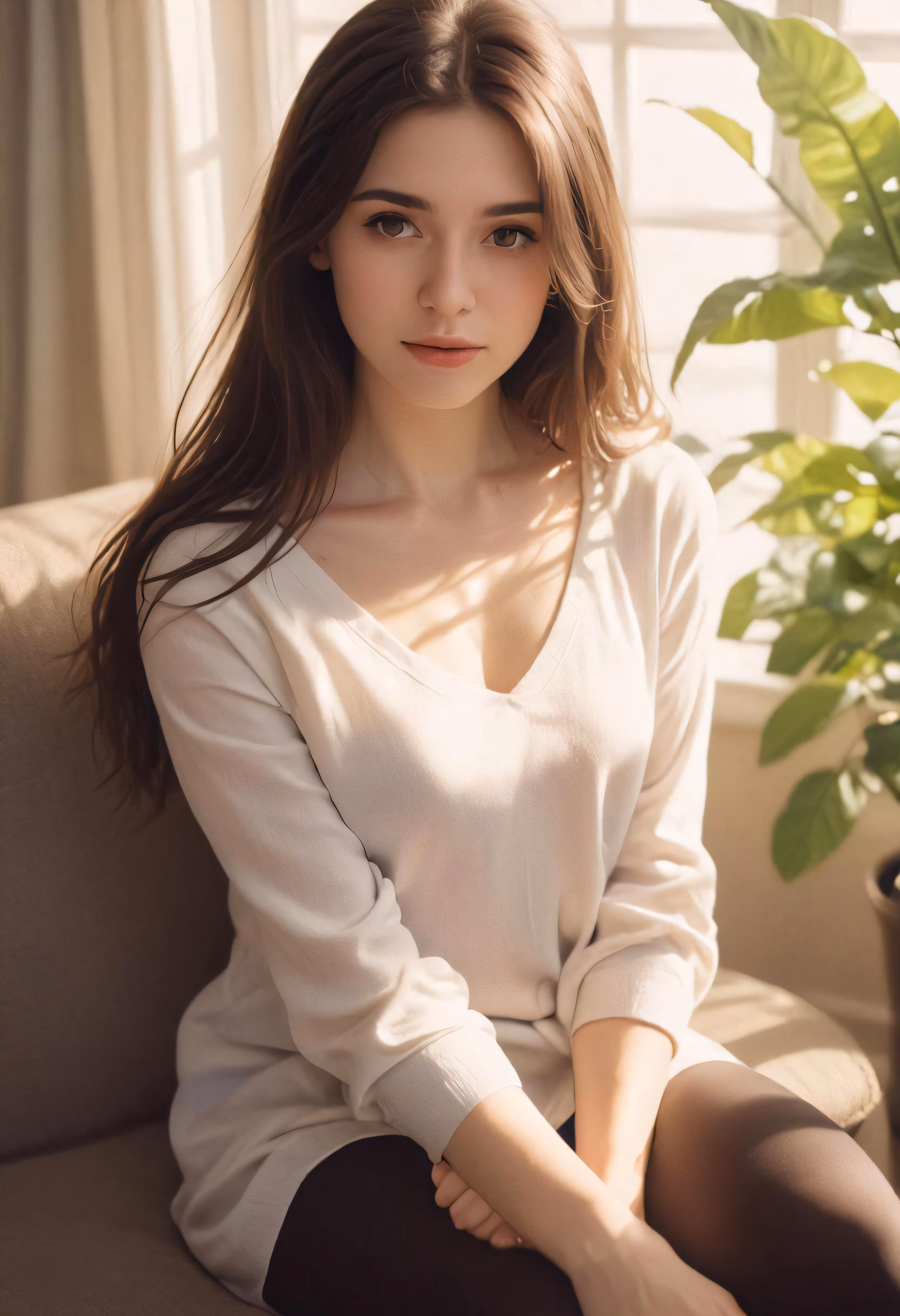 High resolution picture, free to use, a young woman sitting in a chair in a room